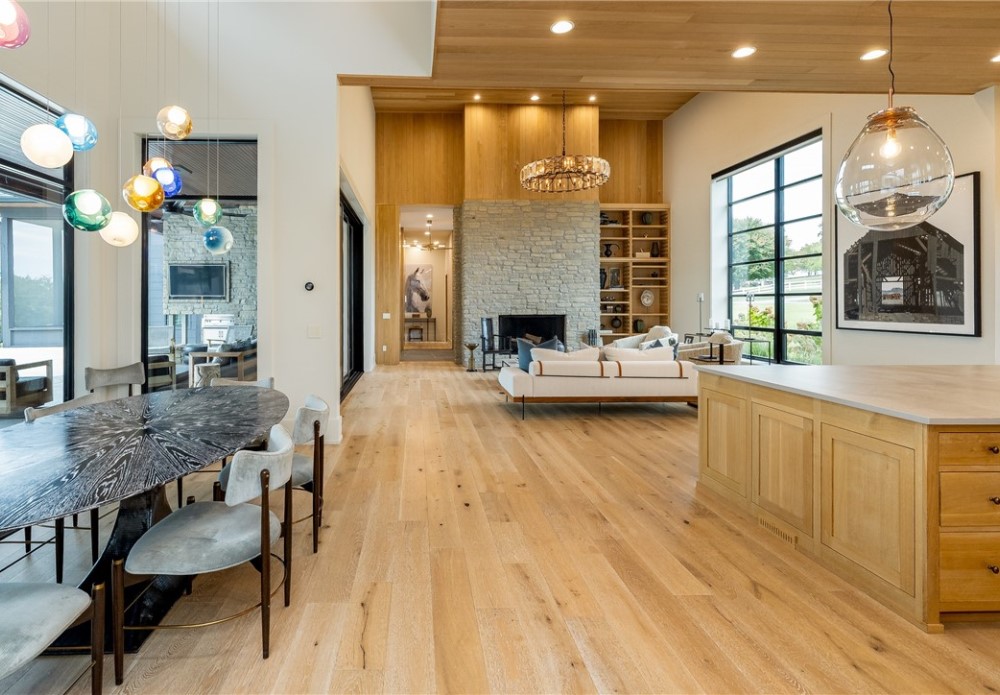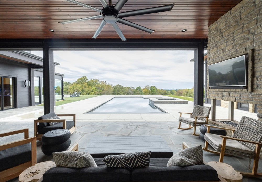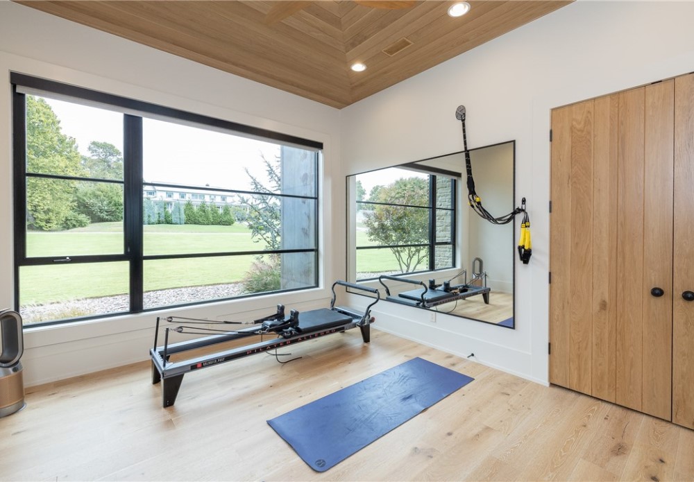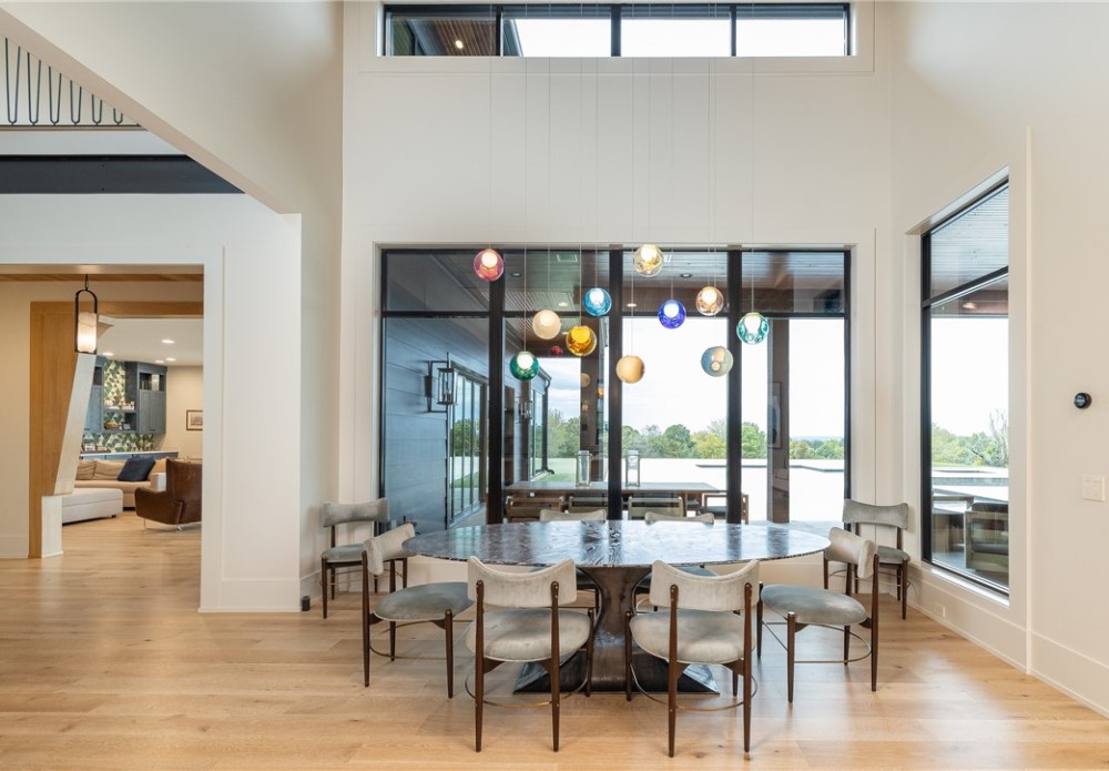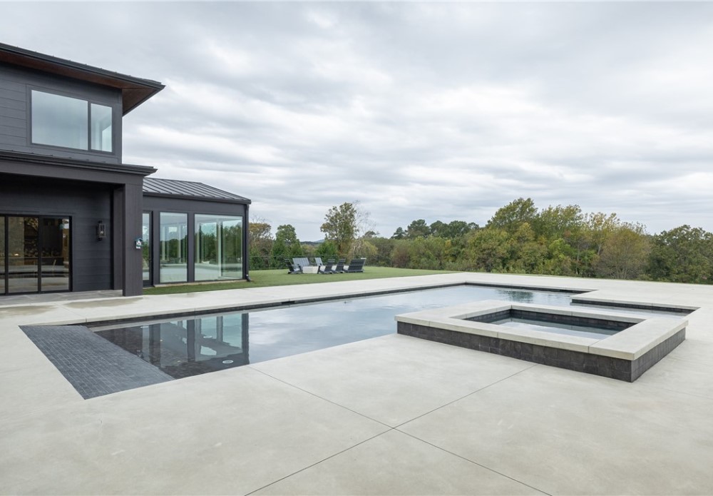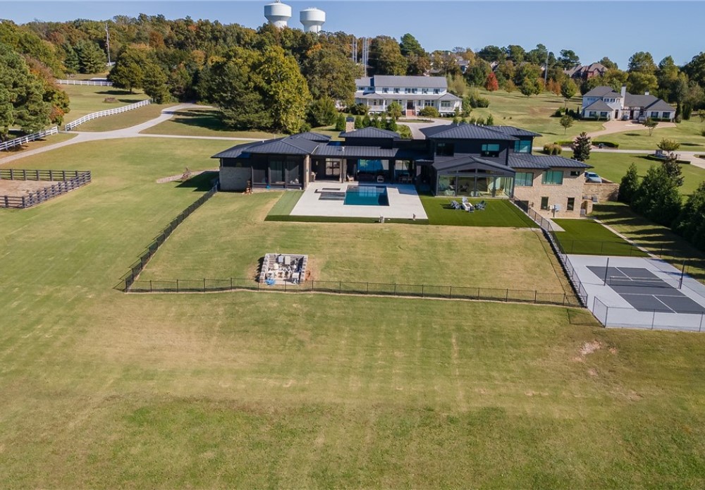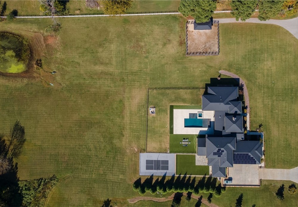 Spanning 13,400 sq. ft. on 5 serene acres with a private pond, this stunning East Fayetteville estate blends luxury, craftsmanship, and functionality. Featuring 5 spacious bedrooms, 5.5 baths, and soaring ceilings, the home showcases white oak flooring, marble finishes, and abundant natural light. Highlights include a chef’s kitchen with Lacanche range and triple dishwashers, a grand living room with retractable glass doors, two-story office, and luxe primary suite with screened porch and yoga room. Entertainment spaces abound with a den, solarium, theatre, and basement bar. Outdoors, enjoy a beach-entry pool, fire pit, pickleball court, and multiple heated patios. The 6-car garage offers EV chargers, car lift, and indoor wash bay. With solar power, refined details, and tranquil pond views, this is a rare retreat of timeless elegance and modern comfort. Too many amenities to list. See attached amenities list. www.4631EBridgewaterln.com for additional photos and information