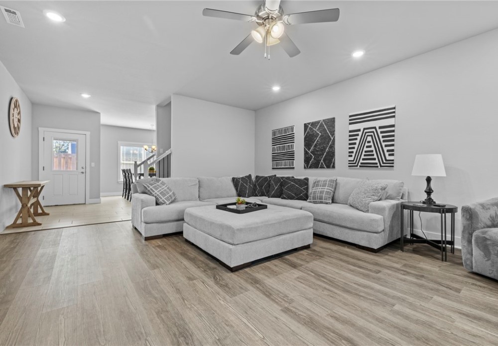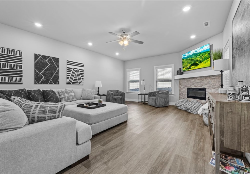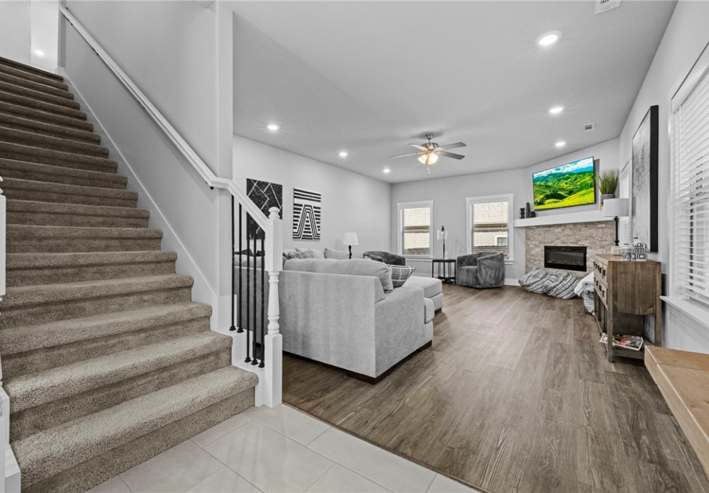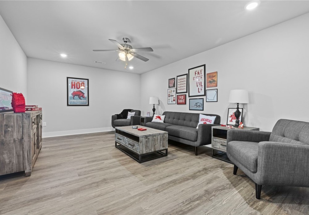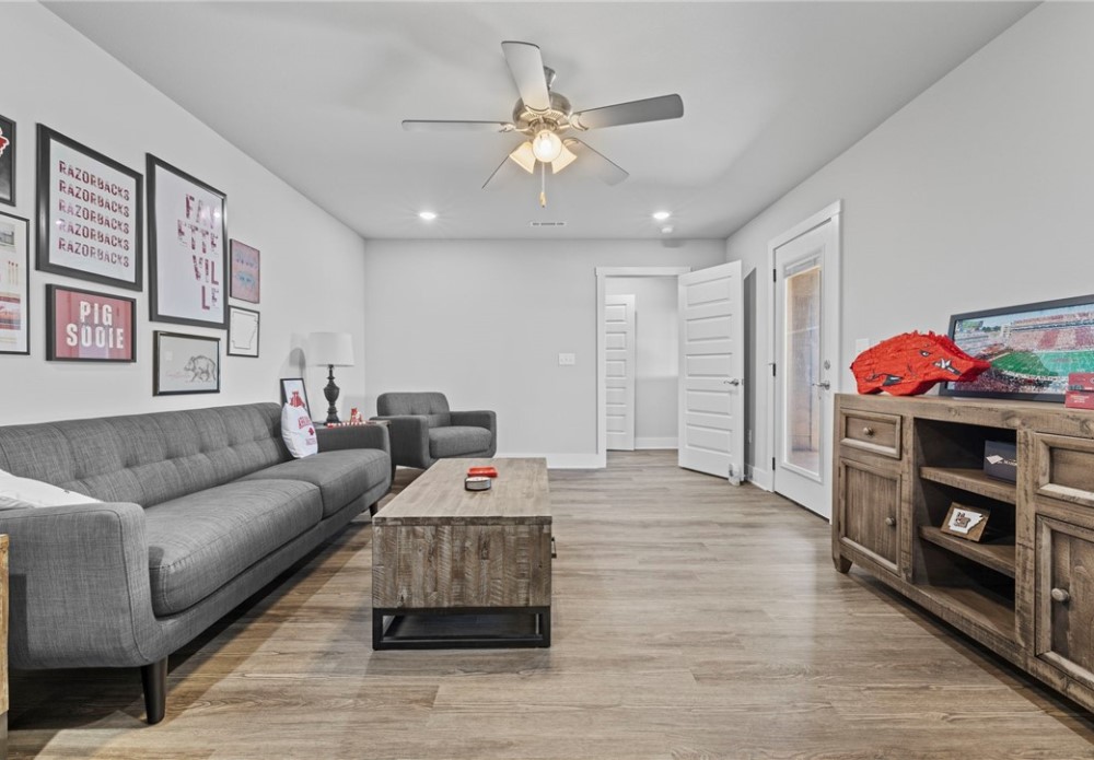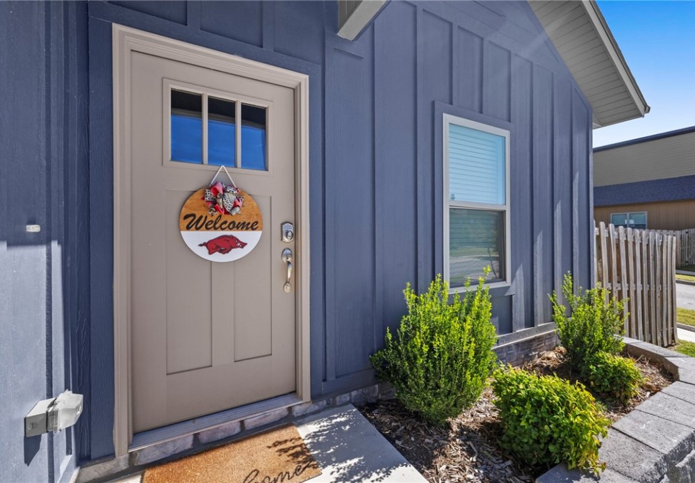 Welcome to this beautiful 3-bedroom, 2.5-bath home featuring plenty of space for comfortable living and entertaining. The main level boasts a bright and airy kitchen with granite countertops and stainless steel appliances that flows seamlessly into the living room-Perfect for gatherings and everyday living. Main level also features the master bedroom with en-suite bath, dual vanity sinks, soaker tub and large walk-in closet. A nice-sized laundry room and half bath are conveniently located as you enter the home. Upstairs, you will find two bedrooms with ample closet space and a bonus room that offers endless possibilities — ideal for a home office or guest space. From here, step outside to the huge covered deck, perfect for barbecues or your morning coffee. Property offers a large backyard for lots of room to play and entertain. Located in a desirable neighborhood and just minutes from I-49 and 4.2 miles from the University of Arkansas. Refrigerator, Washer/Dryer and all furnishings inc