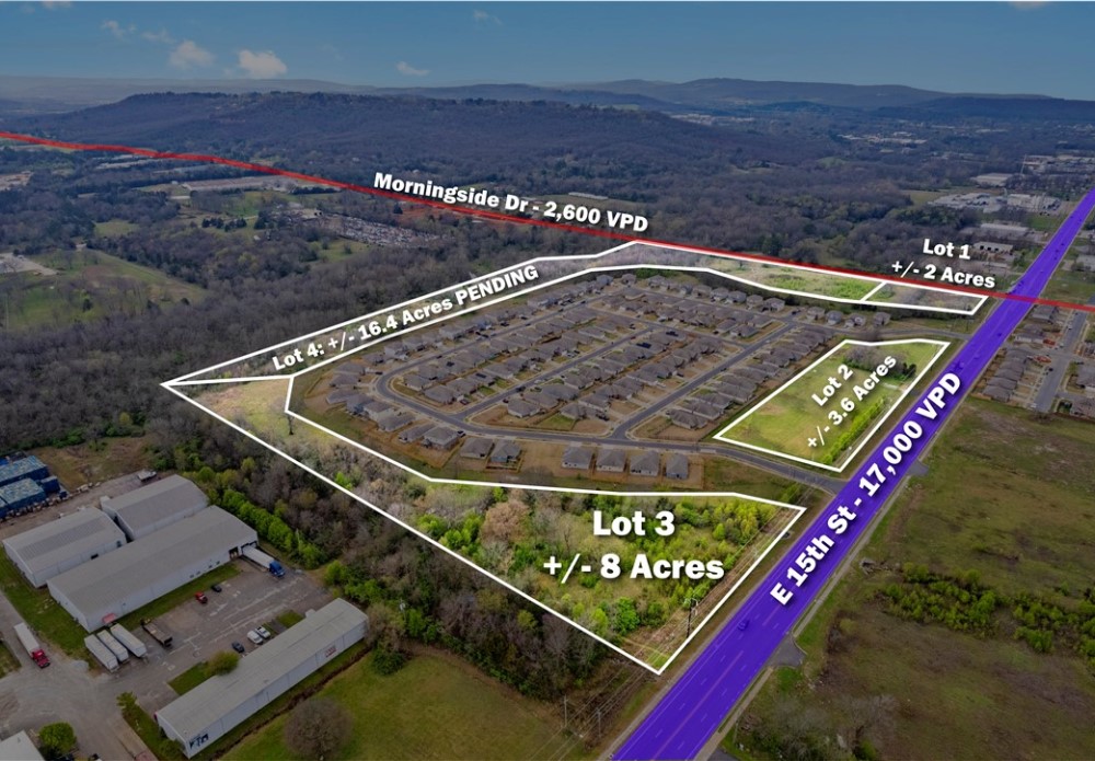 +/- 2 acres of LEVEL land situated prominently at the intersection of Morningside Dr and 15th St, which sees +/- 18,000 VPD. Sewer, water, and electricity are all on-site. Positioned adjacent to a recently constructed subdivision creating more potential customers for either a convenience store, gas station, restaurant, retail development, or many other uses. This prime location presents an ideal opportunity for a gas station, given its strategic placement amidst established neighborhoods and its convenient proximity, just a short 5-minute drive to Downtown Fayetteville and the University of Arkansas Campus. This lot is zoned NC - Neighborhood Conservation. 'It has the least activity and lower density than other zones. It is purely residential zone, however, it can have some mix of uses like civic buildings. The best use would be a C-1, retail business, convenience store, QSR (Quick service Restaurant), Drive-thru business, etc.'