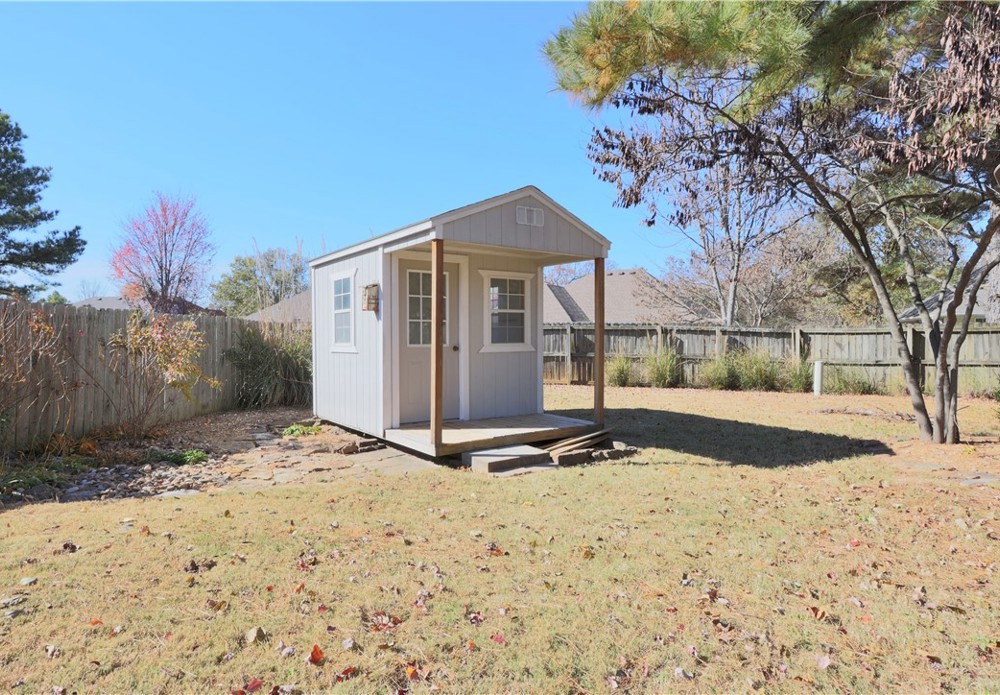 Energy-Efficient 4-Bed Home in West Fayetteville with Backyard Retreat & Solar Panels Spacious 4-bedroom, 2-bathroom home with 2,193 sq ft of living space in the heart of Fayetteville. Near trails, parks, schools, and a only short drive to the University of Arkansas. Steel framed and featuring fully paid-off solar panels, this home combines long-term savings with lasting peace of mind. With generous living spaces—ideal for both daily living and entertaining. The kitchen offers ample cabinetry and countertop space, while the primary suite includes a spacious en-suite bath and walk-in closet. Three additional bedrooms provide flexibility for guests, home offices, or growing families. Step outside to your own private backyard retreat, complete with a storage building for added functionality. Located in West Fayetteville, you’ll enjoy quick access to walking trails, community parks, shopping, and schools—all with the natural charm of the Ozarks just beyond your doorstep.