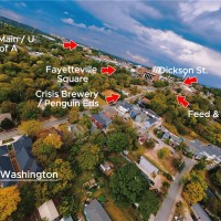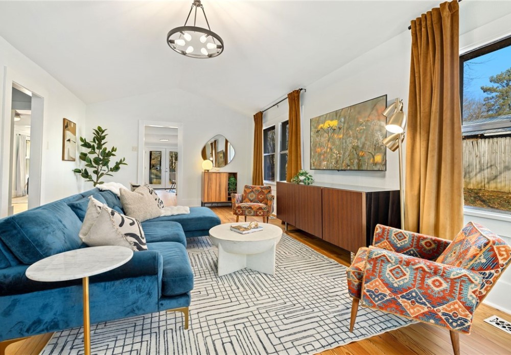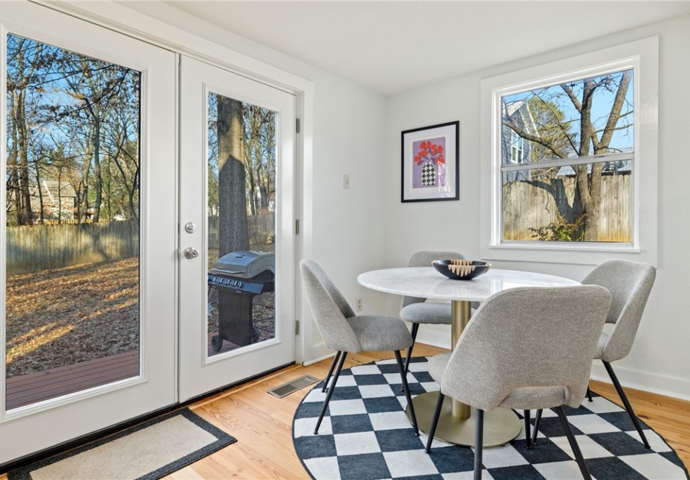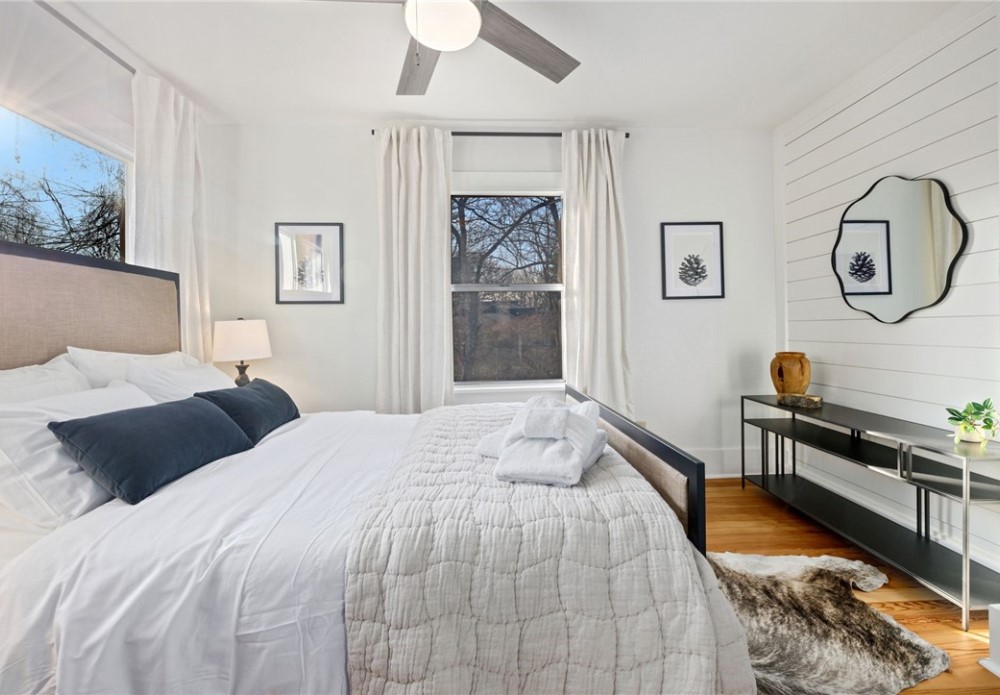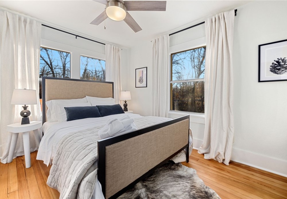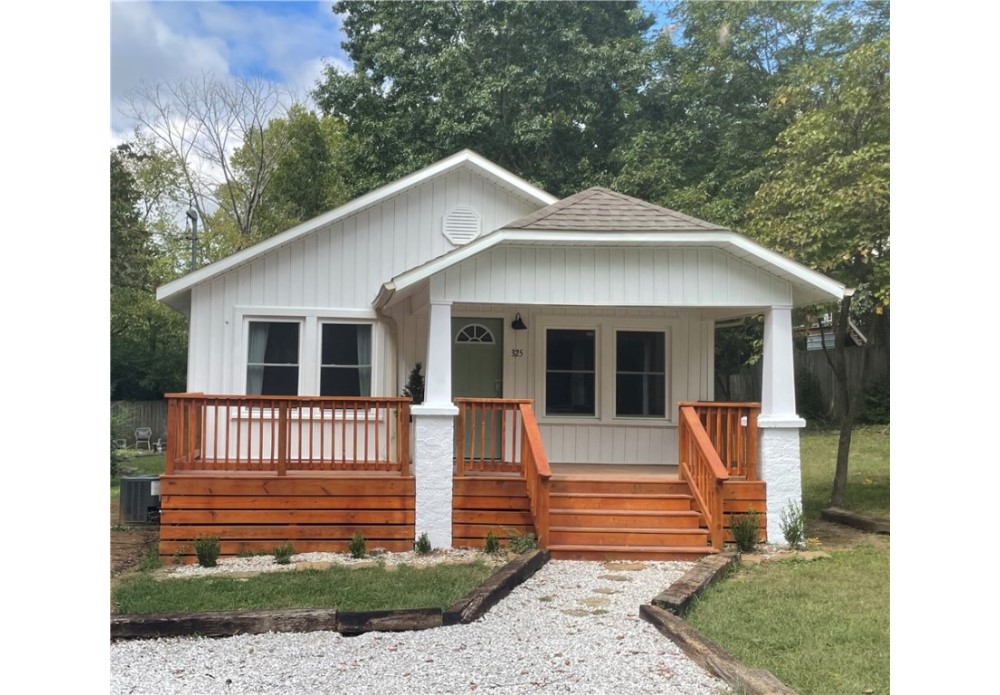 This updated home is nestled on .27 acres in the heart of Fayetteville! Just blocks away from the vibrant Fayetteville Square and minutes from the Razorback Greenway trails. Right around the corner are Dickson Street's shops and eateries, and the University of Arkansas campus. This meticulously updated home blends timeless character with modern upgrades for effortless downtown living. Step inside to vaulted ceilings and beautifully refinished heart of pine wood floors that flow throughout the open layout. The fully remodeled bathroom features high-end finishes, while the kitchen shines with stainless steel appliances, custom cabinets, and luxurious quartz countertops. Stay comfortable year-round with new central heat and air, enhanced by energy-efficient new windows, siding, and gutters. Outside, unwind on the spacious new front and back porches, perfect for enjoying your large, private yard – a rare find for downtown. Book a tour to view this property in one of Fayetteville's most d