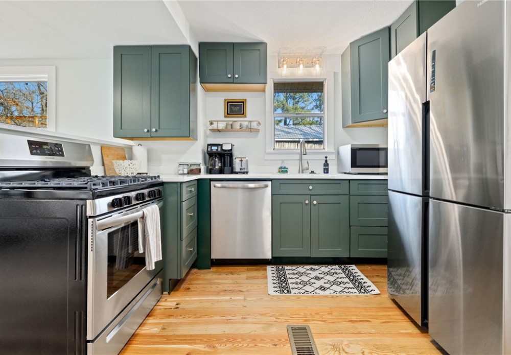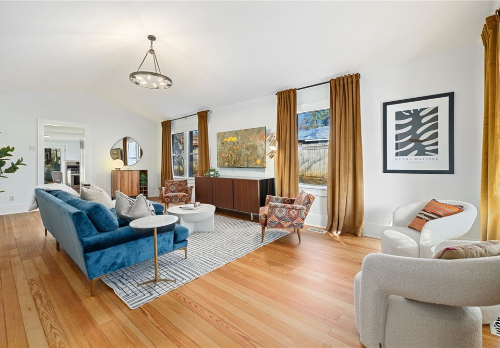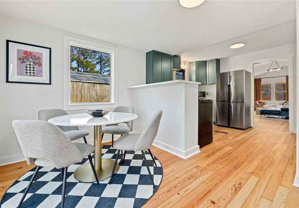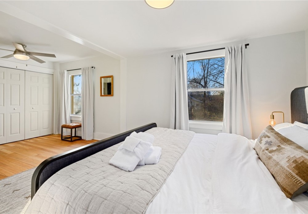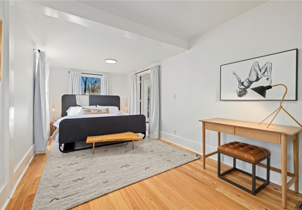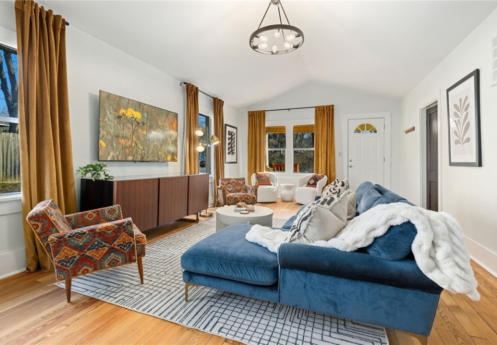 This updated home is nestled on .27 acres in the heart of Fayetteville! Just blocks away from the vibrant Fayetteville Square and minutes from the Razorback Greenway trails. Right around the corner are Dickson Street's shops and eateries, and the University of Arkansas campus. This meticulously updated home blends timeless character with modern upgrades for effortless downtown living. Step inside to vaulted ceilings and beautifully refinished heart of pine wood floors that flow throughout the open layout. The fully remodeled bathroom features high-end finishes, while the kitchen shines with stainless steel appliances, custom cabinets, and luxurious quartz countertops. Stay comfortable year-round with new central heat and air, enhanced by energy-efficient new windows, siding, and gutters. Outside, unwind on the spacious new front and back porches, perfect for enjoying your large, private yard – a rare find for downtown. Book a tour to view this property in one of Fayetteville's most d