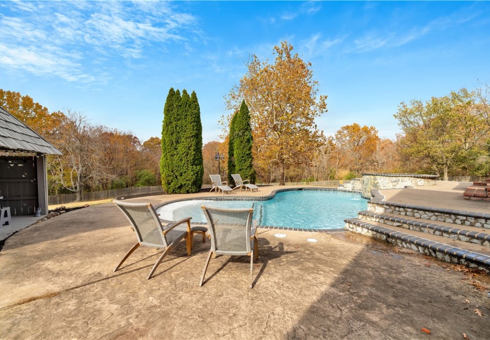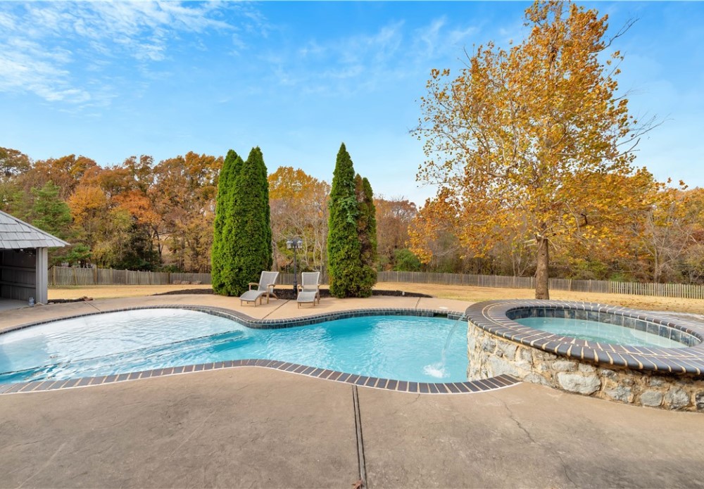 Seeking a move-in ready, attractive estate home? If so, this is it! Home has been updated with new lighting, new light-painted walls, & new carpet. The floor plan is well-suited for both daily activities and hosting gatherings. It features Formal dining room, office, LR, eat-in KIT, guest BR w/ensuite BA & primary BR on main floor. Primary suite has two walk-in closets. Upstairs features a huge bonus room, wet bar, media room complete with projector, three bedrooms & two baths. There is a craft room that could be another bedroom. Large backyard with an in-ground saltwater gunite pool, covered patio, and mature trees. The home features ample storage and is situated on 2.36 acres. Three-car side load garage and circle drive for all your guests! Nicely situated close to Hwy 112 entry, schools, and uptown Fayetteville.