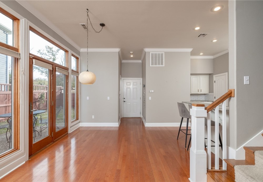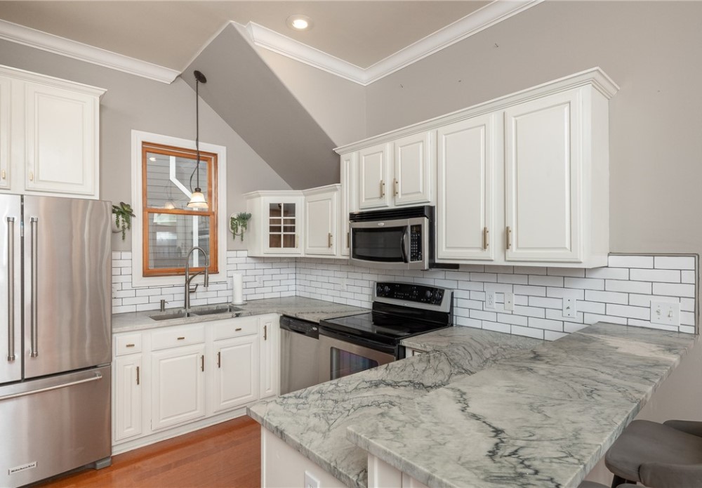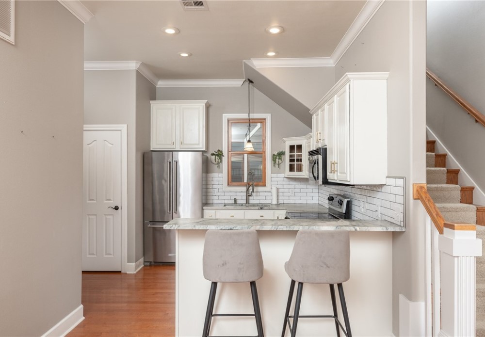 Adorable, move in ready home in East Fayetteville’s highly sought after Charleston Place S/D. 1,804 heated and cooled sq ft includes 3 bedrooms, 2 full bathrooms & a 1/2 bath, eat in kitchen, dining, living, and separate laundry. Amenities include an updated kitchen with stainless steel appliances, solid surface quartzite counter tops, hardwood floors, Anderson Wood Windows, oversized bedrooms of which all 3 have balconies, vaulted ceilings, gas log fireplace, tons of natural light, perfect fully fenced side yard, and 2 car rear entry garage. Community amenities include a park, pond, and gorgeous grounds! This property is located in the center of town close to the trails and Root Elementary School.