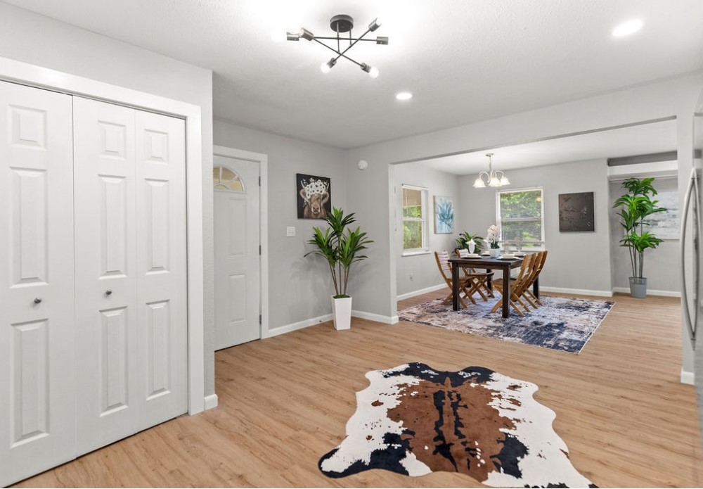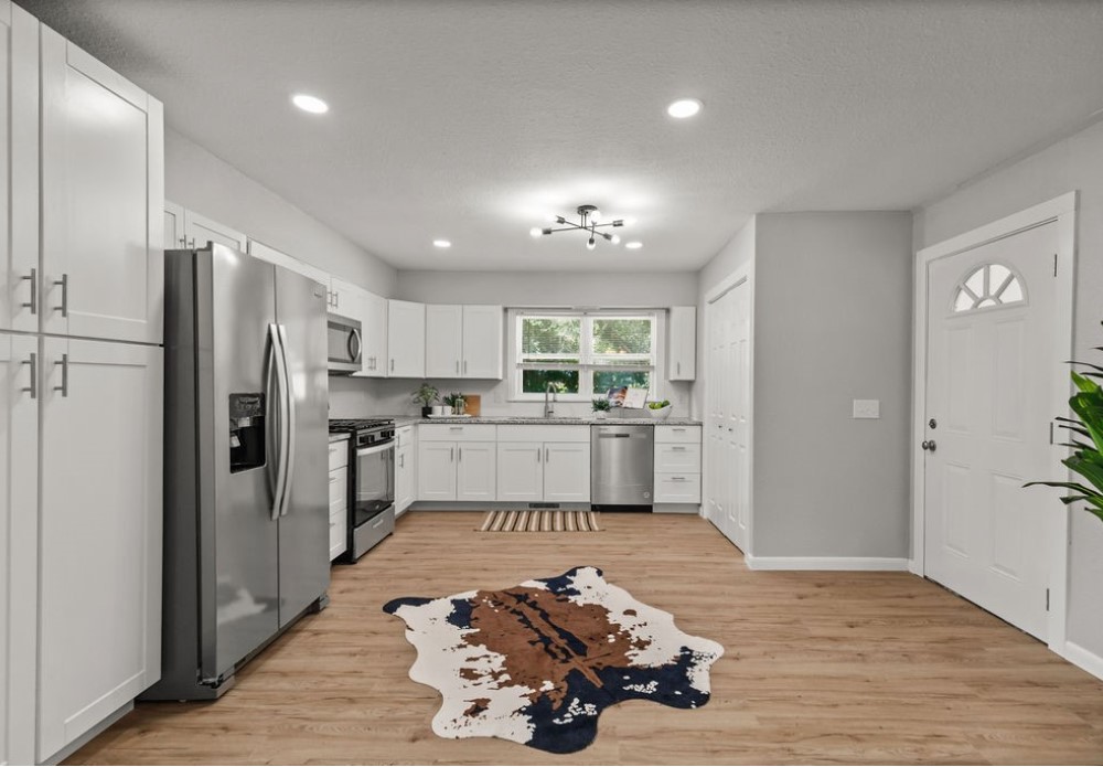 Discover this beautifully renovated home, perfectly positioned near the University of Arkansas, vibrant Dickson Street, and Razorback Greenway, where modern updates meet comfortable living. This property has been thoughtfully transformed with fresh interior and exterior paint, creating a move-in ready atmosphere. The kitchen features completely new cabinetry and appliances, while updated bathrooms showcase all new modern fixtures. Quality improvements include new LVP flooring, LED lighting, upgraded plumbing, double-pane vinyl windows, and a brand new AC unit. Amenities include washer/dryer hookups, ceiling fans in bedrooms, a one-bay carport, and a seller-paid home warranty. The new sliding glass door opens to a step-down deck overlooking the private backyard with mature trees and full chain link fencing. Additional storage provides extra convenience. Schedule your personal tour of this perfectly located and beautifully updated home today.