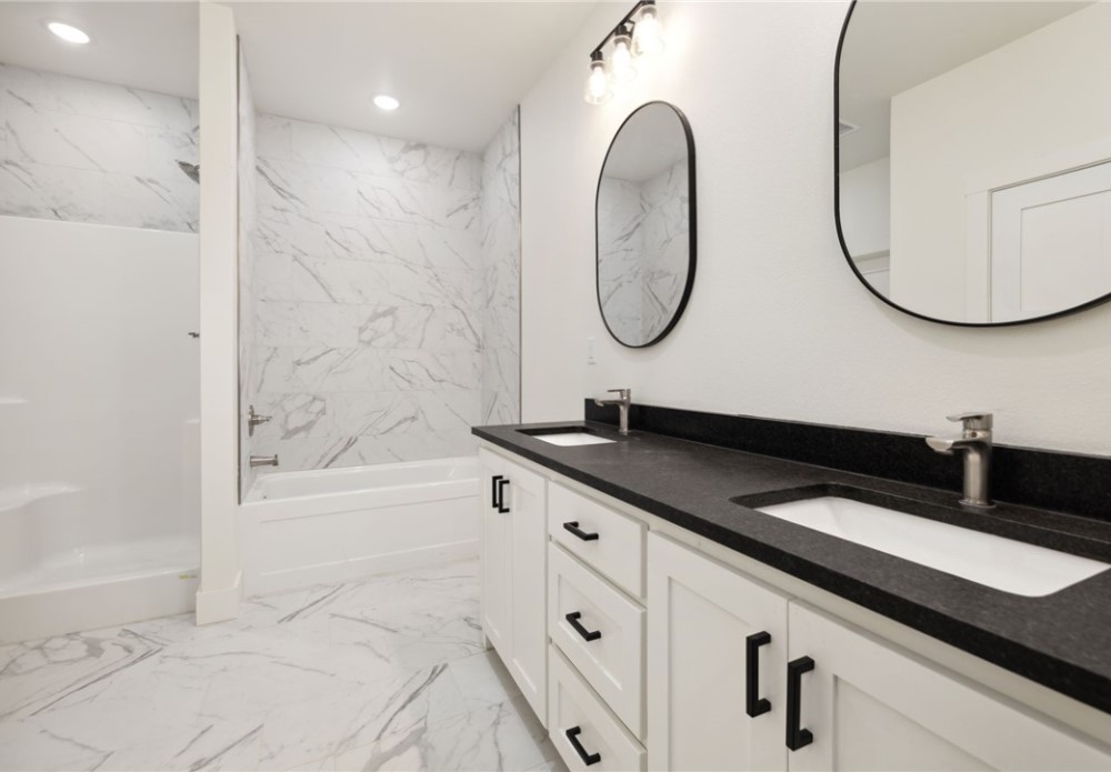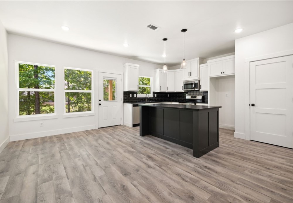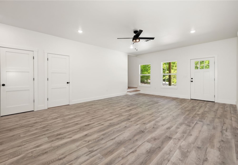 Modern home on the east side of Bella Vista. This two-story, 3-bedroom, 2.5-bath home features a spacious open floor plan, perfect for both everyday living and entertaining. The kitchen offers ample space with an island, pantry, custom cabinetry, stainless steel appliances, and granite countertops throughout the home. The main-level primary suite includes luxury vinyl plank wood flooring, a walk-in closet, and an en-suite bath with double vanities, a soaking tub, and a separate shower. Upstairs, two generously sized bedrooms feature lush carpeting, large closets, and share a full bath with double vanity and a tub/shower combo. Enjoy two covered porches, a two-car garage, and a large yard—ideal for outdoor living. Located just minutes from bike trails, lakes, golf courses, and more, this home blends modern comfort with the natural beauty of Bella Vista.