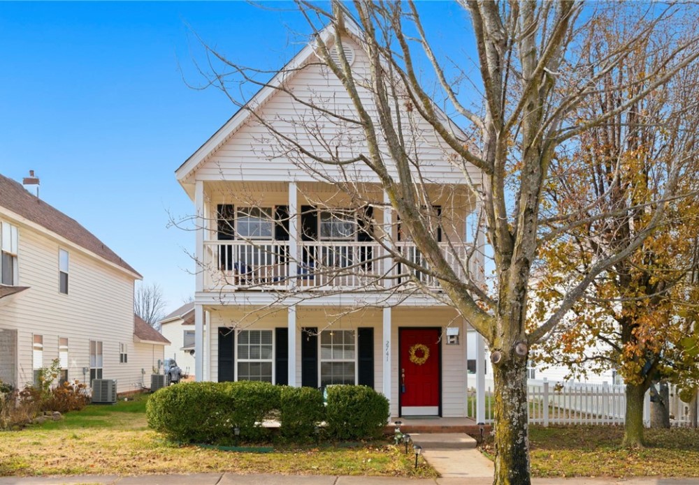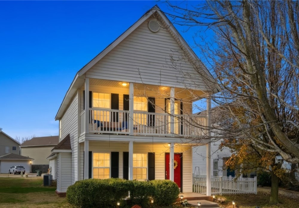 Just minutes from the University of Arkansas and everything. Northwest Arkansas has to offer, this move-in-ready home is ideally located across from schools and a park, with a neighborhood pool just steps away. The 3 bedroom, 2.5 bath layout features a gas fireplace in the living room and a main-level primary suite. Enjoy a front patio, second-story balcony, and a fenced side yard, plus a two car garage located directly behind the home. Easy to maintain with easy access to Hwy 49, this property is perfect as starter home or investment opportunity. Roof replaced in 2021. New HVAC in 2024.