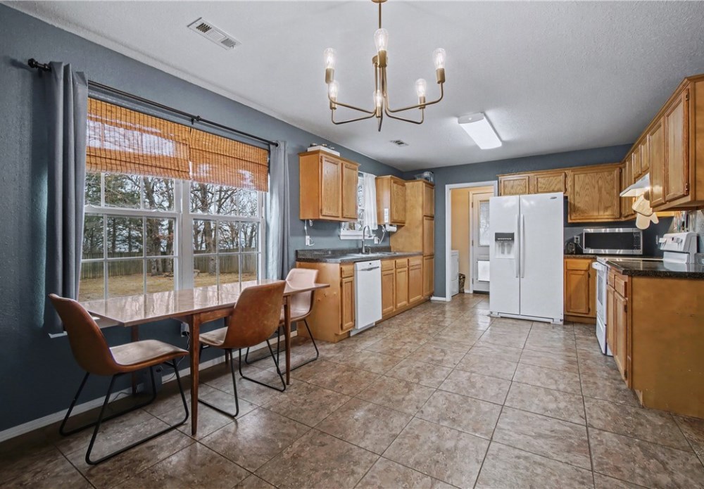 Well-maintained home located in a quiet Fayetteville neighborhood featuring a desirable split floor plan and fresh interior paint. Enjoy a covered patio overlooking a wooded backdrop, offering privacy and peaceful views, along with a spacious backyard ideal for outdoor living. Recent updates include a roof replaced in 2022. Seller is offering a home warranty, a $3,000 buyer credit, and all appliances with an acceptable offer. Move-in ready and conveniently located just minutes from the University of Arkansas, downtown Fayetteville, shopping, dining, and major routes—offering the perfect blend of comfort, privacy, and convenience.
