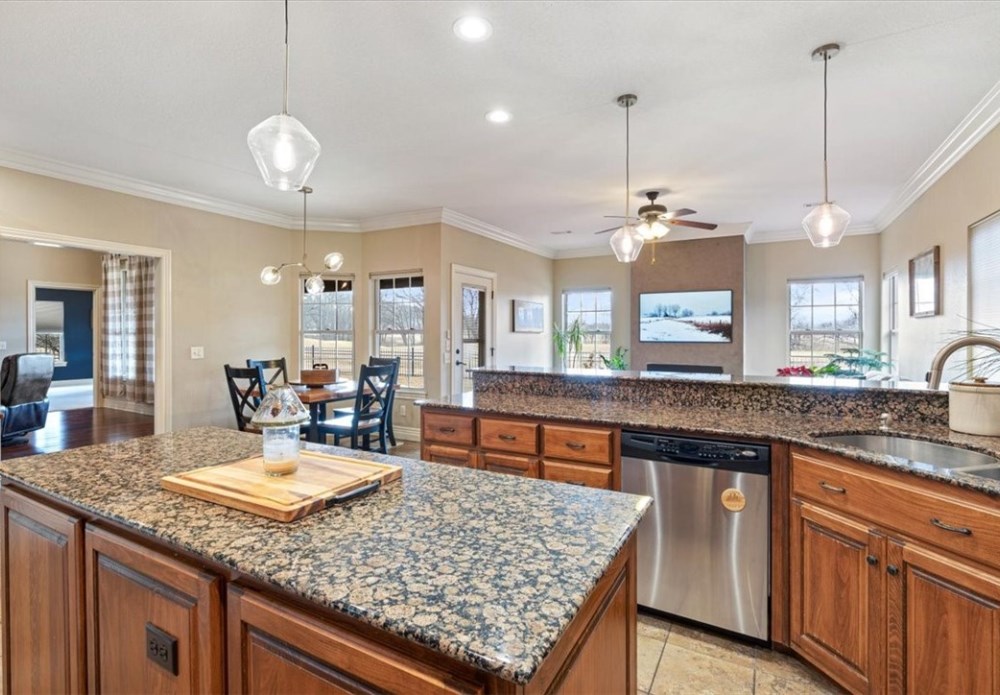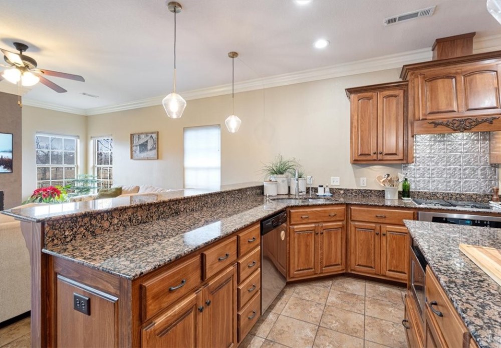 One level 4 bedroom home in the highly sought-after Stonebridge Subdivision, offering refined comfort and scenic golf course living. The well-appointed kitchen features a 5-burner gas range, built-in microwave, generous peninsula seating, and abundant cabinetry—perfect for everyday living and entertaining alike. A sun-filled dining area creates a warm, inviting space for meals and gatherings. Thoughtfully designed with ample storage throughout, this home delivers both functionality and elegance. Step outside to a peaceful patio overlooking the golf course, where sweeping views provide a serene backdrop for morning coffee or evening relaxation. Impeccably maintained and move-in ready, this beautiful home combines ease of living with a tranquil setting—an exceptional opportunity in Stonebridge.
