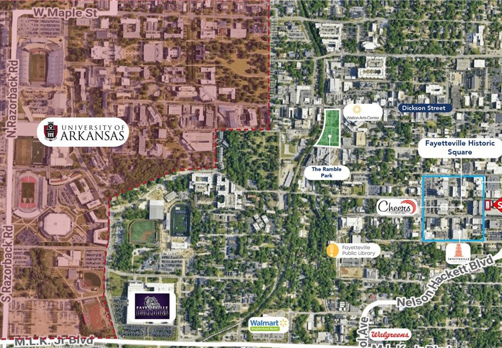Fantastic location off the Fayetteville Square. Within walking distance of popular shopping, dining, Fayetteville Farmer’s Market, Dickson entertainment district, and the University of Arkansas. The space features beautiful wooden floors, neutral color palette, and red brick detail. Layout includes an updated kitchen, one bedroom, open dining/living room, and stacked washer/dryer unit. New carpet and new paint