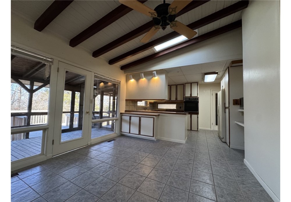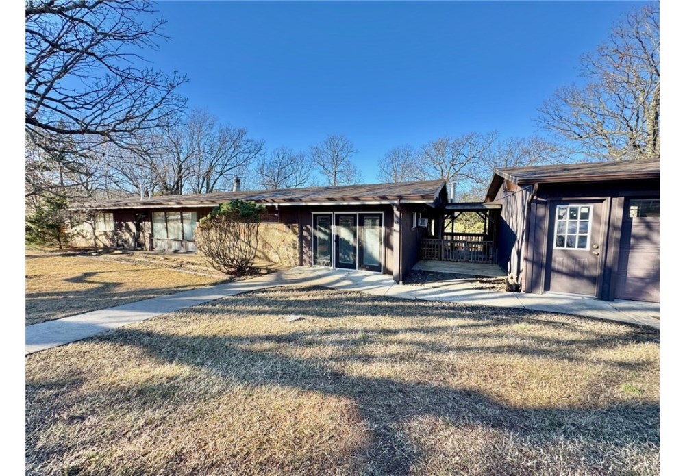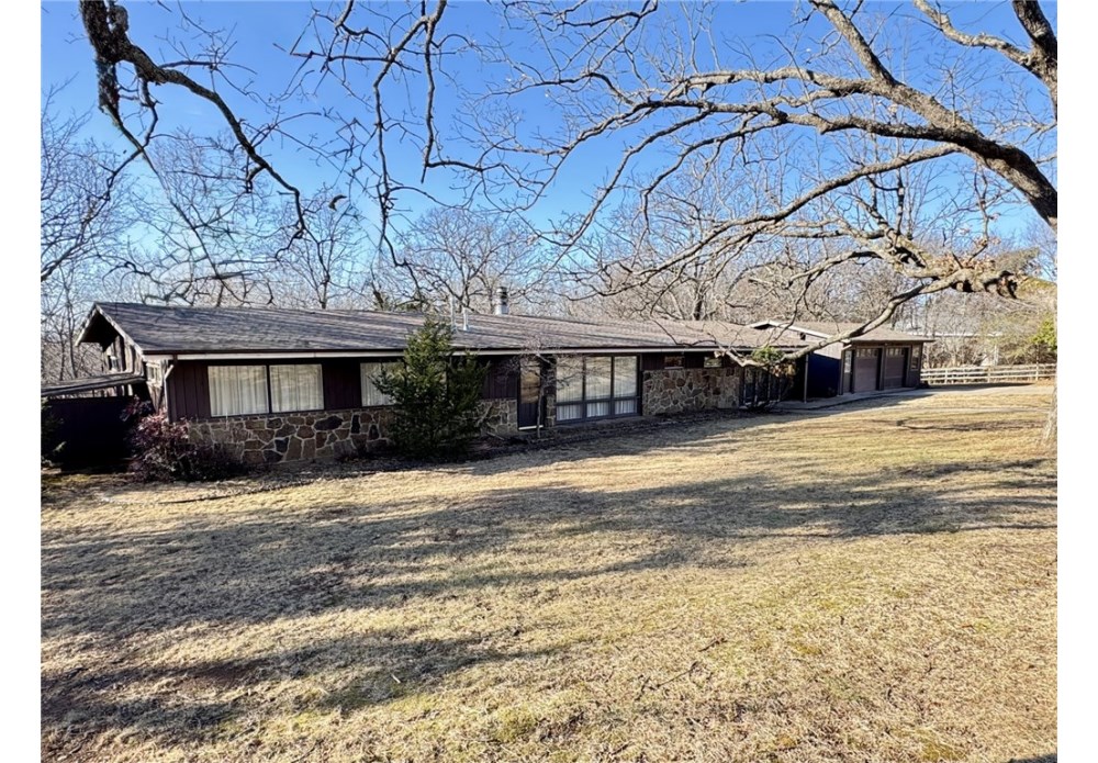 Nestled in the coveted Mt. Sequoyah area, this mid-century modern 3-bedroom, 2-bath home blends timeless architecture with serene natural surroundings. Walls of windows flood the home with natural light and connect the interior to the outdoors. Local stone, warm wood floors, vaulted beamed ceilings, and a striking stone fireplace with tongue-and-groove accent wall create a warm, architectural feel. The kitchen features a gas cooktop with beautiful sunset and nature views. Enjoy a fenced backyard and multiple balconies ideal for entertaining or relaxing in the private, tree-filled setting. Additional features include a large workshop with potential for extra living space, a separate oversized two-car garage, small barn, and lean-to for storage. Situated on nearly a full acre bordering peaceful woodlands and wildlife, on a quiet low-traffic street.