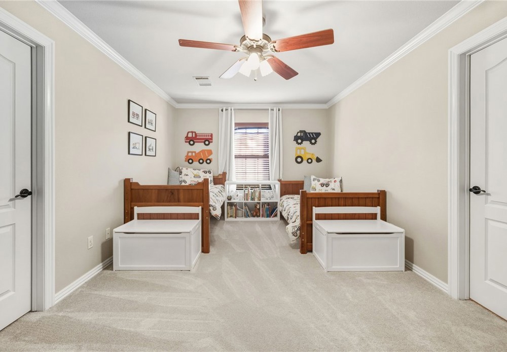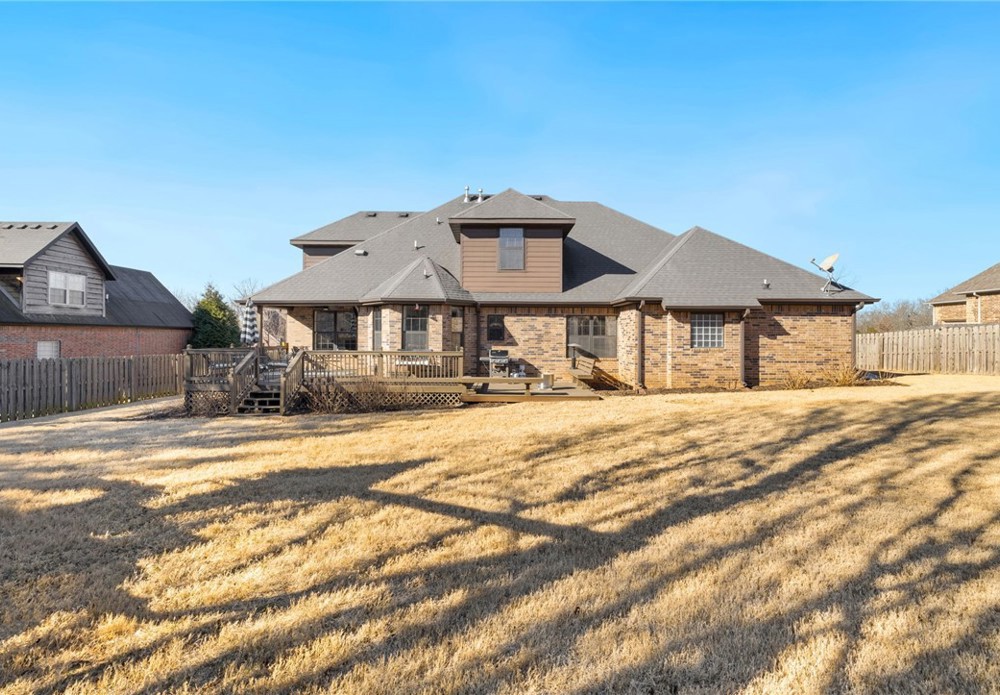 Located in East Fayetteville within the Vandergriff School District, 2772 Signet Place offers the location and layout you’ve been searching for. This 4-bedroom, 4.5-bath home features a thoughtfully designed floor plan with a spacious primary suite on the main level, along with a guest bedroom or office that includes its own private bath. Upstairs, you’ll find additional bedrooms—each with its own en suite bathroom—plus a large media room/playroom perfect for relaxing or entertaining. Recently added built-ins enhance both the media room and the upstairs hallway, providing style and functionality. Step outside and enjoy the backyard while entertaining friends on the newly added lower deck, creating the perfect space for outdoor living.