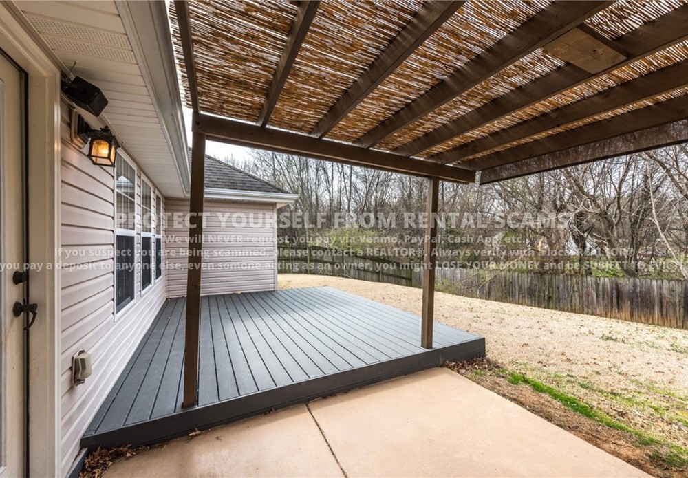 COMING SOON! Available approx. 5/12/26! NO CATS. Check out this well-located 3-bedroom, 2-bath home just minutes from dining, parks, and a short drive to the University of Arkansas. The living room offers a warm, inviting feel with a gas-log fireplace and laminate wood flooring. The kitchen features tile floors, granite countertops, and a separate eat-in dining space. The primary bedroom includes carpeted flooring and a private ensuite with a double-sink vanity, whirlpool tub, and separate walk-in shower. Don't miss the spacious, fully fenced backyard with a deck and covered patio! *Available date may change. Property is tenant occupied - do not disturb the tenant. **Tenant is responsible for all utilities and lawn care/maintenance.