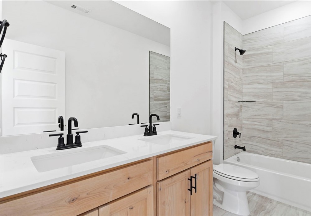 The Marvelous Mitchell plan in Pine Hollow! This community offers two-story homes with spacious living areas, perfect for entertaining and everyday comfortable living. This home features 4 bedrooms, 3 full baths, & a game room upstairs! You'll enjoy a beautiful modern electric fireplace with a poplar mantle in the living room! Full oak Tread Staircase with black modern handrails-Bathroom 1 will be tile flooring- Beautiful Wood Laminate click LVP first and second floor! In the kitchen, you’ll find stunning quartz countertops, tile backsplash, and a gas range. The primary bedroom has an ensuite complete with quartz countertops, dual sinks, freestanding tub and a walk-in shower with tiled walls! Ceiling fans in the bedrooms, living room and game room! Home exterior features painted brick and Hardie® siding (per plan) with a covered patio (per plan). The programmable thermostat allows you to effortlessly control your environment with the touch of a button! Taxes and parcel TBD.