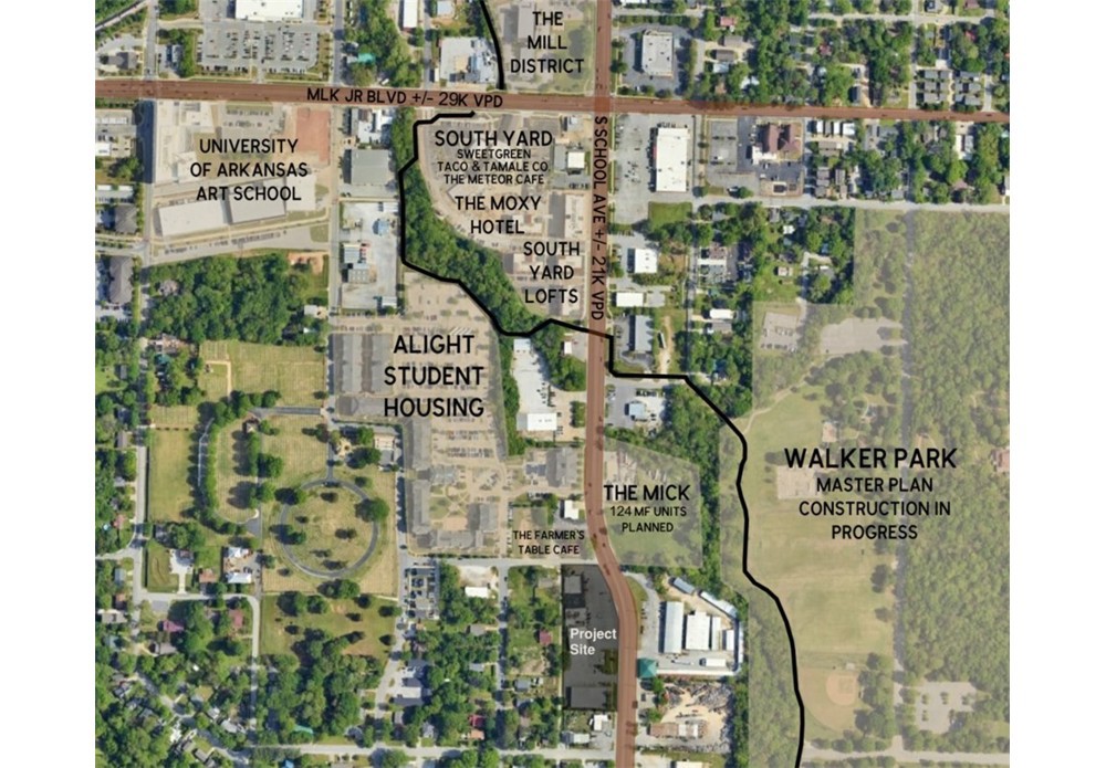 Fully remodeled commercial property in the South Fayetteville corridor on high-visibility South School Ave (US-71B) delivering beginning of 2027. The building will undergo a comprehensive renovation including updated exterior, modernized interior finishes, and improved systems, creating an opportunity for restaurant, retail, or office users. Excellent exposure along one of Fayetteville’s primary north-south arterials with strong daily traffic counts and convenient access to MLK Blvd, Downtown, and I-49. Positioned in a rapidly evolving corridor near Walker Park and the University of Arkansas.