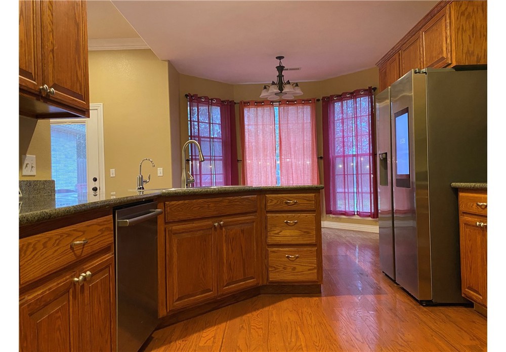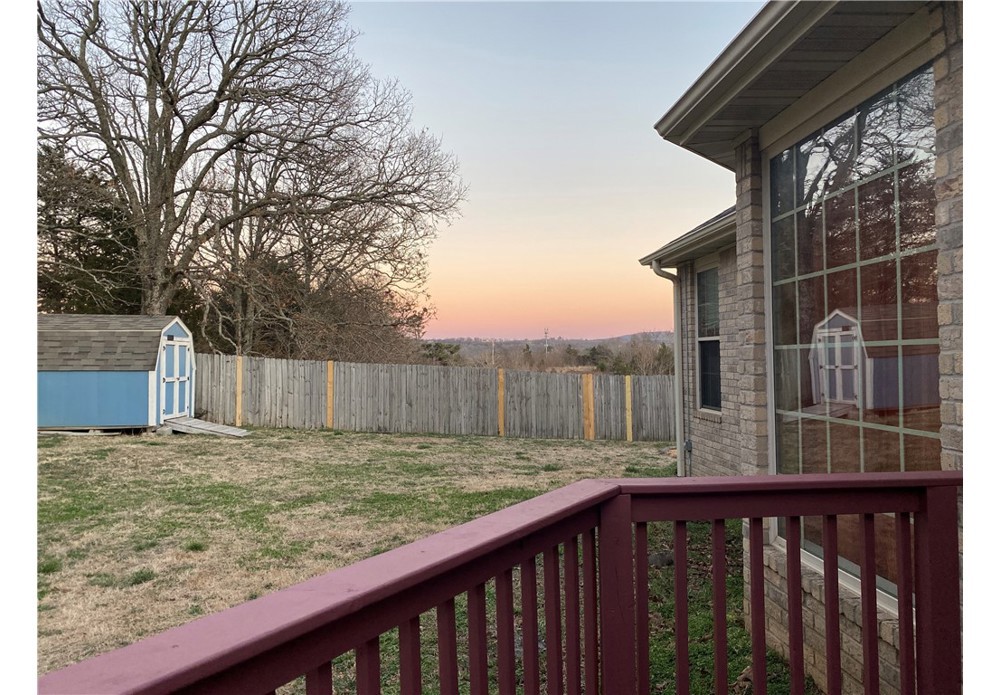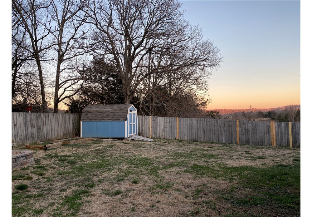 A rare blend of privacy and convenience in NWA, this beautifully maintained home offers privacy, modern upgrades, and easy commutes to the U of A, and downtown Fayetteville. Much lighter traffic than east Fayetteville! Fenced backyard with beautiful view of nearby hills No neighbors on three sides. Three-car garage Storage shed Heavy-duty outside power circuit pre-installed. Updated kitchen with Bosch dishwasher (2022), Samsung smart touchscreen refrigerator (2023), new microwave and vent hood (2025) Google Nest smart themostat Jetted tub in primary suite Large central living area Fiber internet available Architectural shingle roof & gutters (2016) 60-gallon hot water tank (2019) Feels like country living, yet close enough for grocery deliveries.