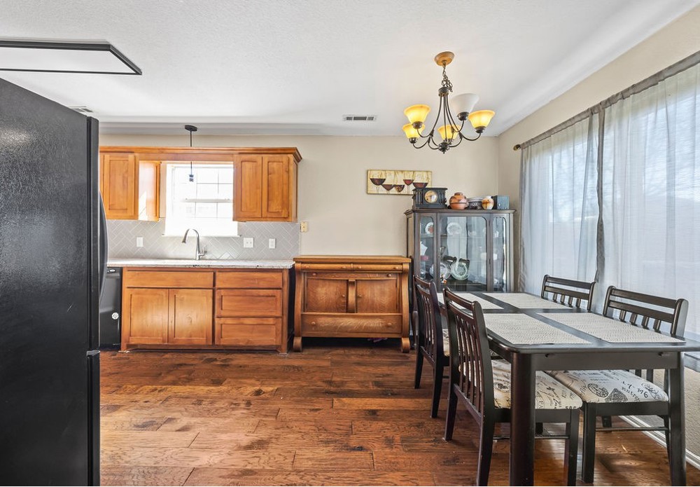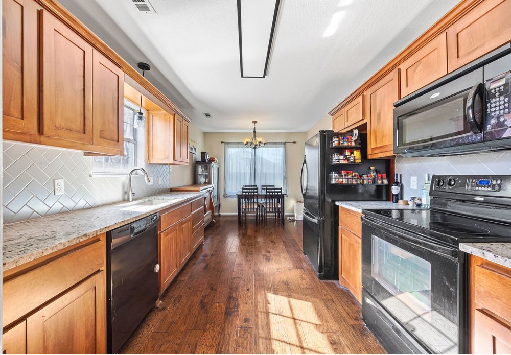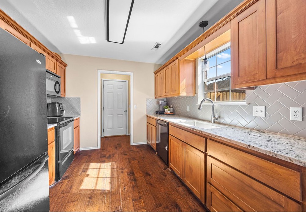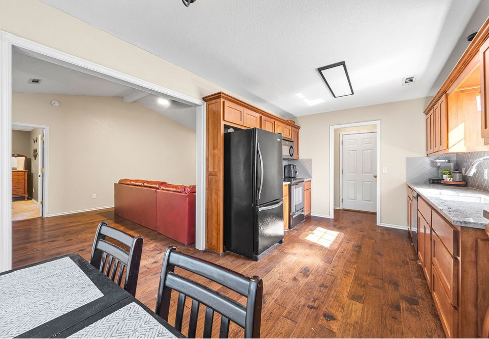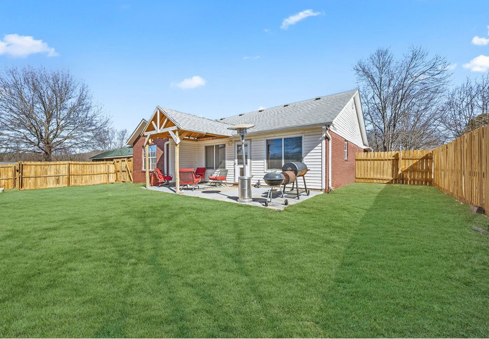 Move-in ready and packed with upgrades, this beautifully maintained one-level home offers 3 bedrooms and 2 baths with a bright, open feel. Soaring cathedral ceilings and rich hardwood floors create a warm, inviting atmosphere from the moment you walk in. The updated kitchen shines with custom cabinetry, granite countertops, and a stylish tile backsplash, with matching granite surfaces carried into the bathrooms. Recent major improvements include a new roof, HVAC system, and hot water heater—providing true peace of mind for the next owner. The laundry room features additional custom cabinetry for smart storage. Step outside to a newly stained, privacy-fenced backyard—perfect for relaxing evenings, entertaining guests, or pets at play. With quality finishes throughout and convenient single-level living, this home is the perfect blend of comfort, style, and move-in ready ease .