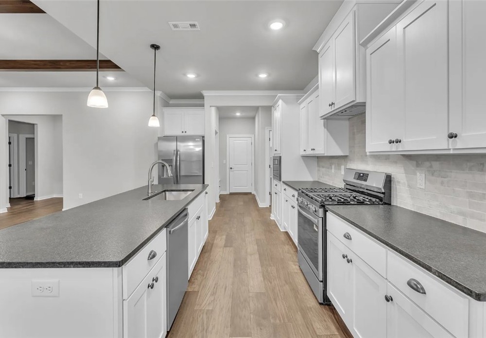 Welcome to a beautiful design built to give your family a luxurious home at an affordable price. This floor plan is 2139 sqft and has 4 bedrooms, 3 bathrooms, and a finished 3 car garage with many options to meet all of your lifestyle needs. The quality of the home is evident from the moment you enter from the large covered front porch. Featuring an open concept living room, kitchen, and dining area, this floorplan is designed to make entertaining fun, comfortable, and easy. Coupled with immediate access to a substantial covered patio and fenced in backyard allows you to host in any scenario throughout the year. Whether you are grilling for a game, hosting Christmas dinner, or simply having a movie night with the family, you’ll be well equipped to keep your guests happy. In addition, this floorplan holds a Flex Room to add flexibility to planning your property. Whether you’d like an extra bedroom, a children's playroom, or even a home cinema, this home gives you the option to do so.