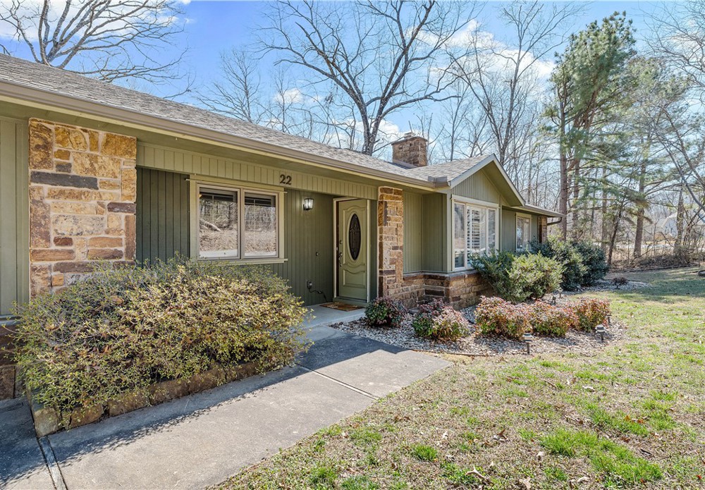 Welcome to 22 Dornoch Lane, a beautifully maintained home in the heart of Bella Vista. This home features a spacious, open, split-floor plan highlighted by large bedrooms and a living room with a gas log fireplace. The property has been moderately updated, featuring a new 2025 heat pump with warranty, and a 2018 roof. The kitchen is complete with new stove and microwave, plus a newer dishwasher. Primary suite includes an additional walk-in closet and an ensuite with a new toilet, faucets, and shower head. New ceiling fans in every room. Outside, the back deck offers a peaceful retreat with wildlife and privacy. The oversized garage includes a 12x17 workshop space. Living here means enjoying world-class Bella Vista amenities, including 7 private lakes, 7 championship golf courses, and miles of premier hiking and biking trails. This move-in-ready home perfectly combines modern reliability with the best of Northwest Arkansas living.