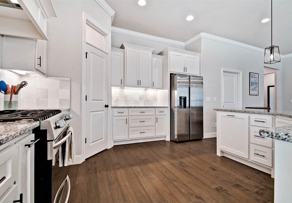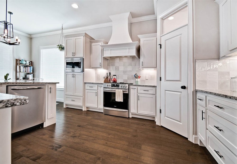 This modern, well-maintained newer home in Creekview subdivision features a clean, open-concept design with a welcoming entry and wood floors in the main living areas. The kitchen is equipped with granite countertops, a gas slide-in range, stainless steel appliances, and a walk-in pantry. The primary suite offers a private retreat with a large tub and a separate walk-in shower and two walk-in closets. Two other spacious bedrooms and 2 1/2 baths. Outside, the nicely landscaped backyard is fully enclosed by a wood privacy fence and features a covered patio and an extended area with plenty of room for seating and a dedicated space for a fire pit. This home has a three-car garage with 8-foot tall doors. Washer and Dryer will stay with the home. All this located with easy access to I-49 and the University of Arkansas, this home is also near schools, shopping, Underwood Park and Clabber Creek Trail which connects you to Fayetteville's extensive paved trail system and the Razorback Regi