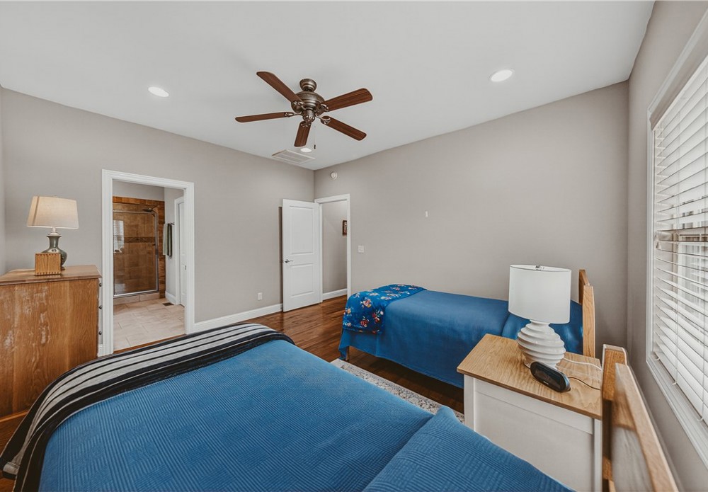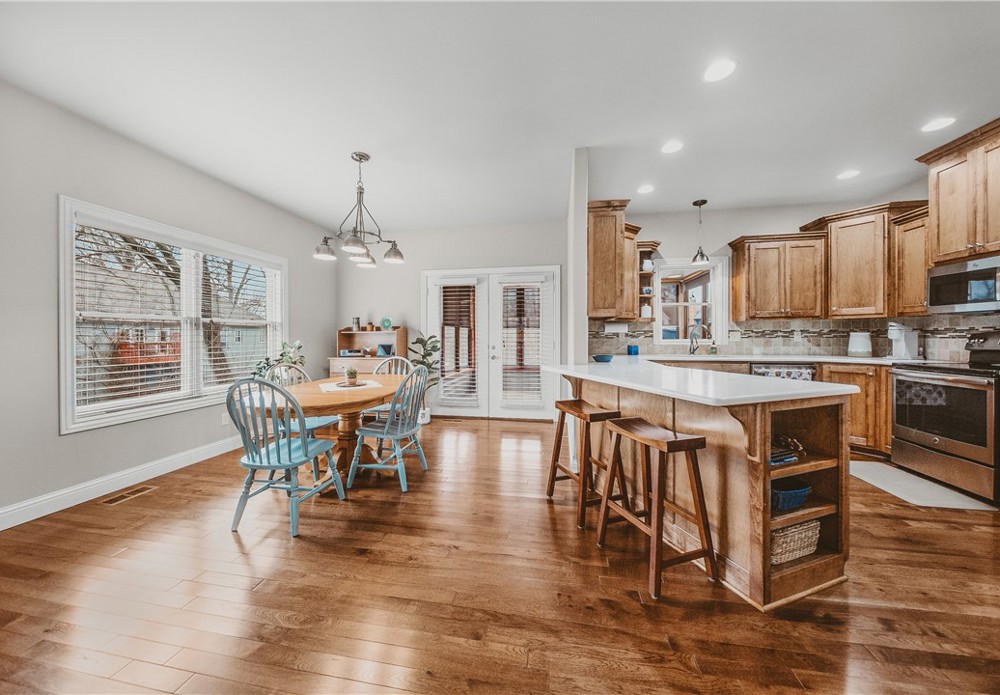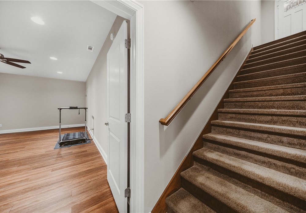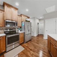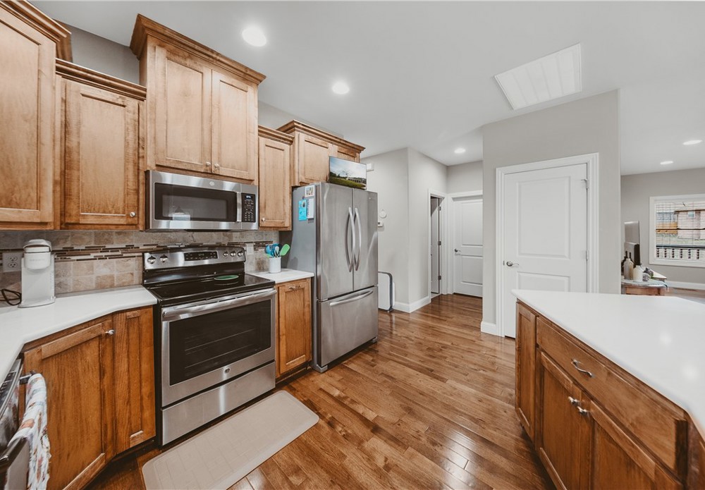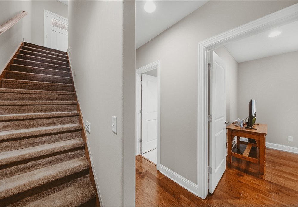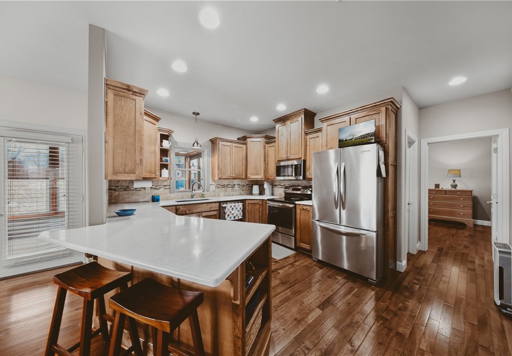 Location and like-new — downtown Bentonville area, within walking distance to downtown and a short ride to Coler Bike Preserve. This home features a west-facing screened back porch. Inside, wood floors throughout the open-concept main level. The spacious living room connects to the EIK, creating an inviting layout. The kitchen feels like new and showcases beautiful custom cabinetry, quartz countertops, and a large walk-in pantry. The primary suite is located on the main level and includes a luxurious bath with a large tiled walk-in shower. A powder bath and spacious utility room complete the main level. The lower level offers versatility with two generously sized bedrooms, large closets, a full bath, and a large flex room perfect for a media, office, or gym. There is interior access from the main level as well as separate access from the garage — ideal for multi-generational living. A large mechanical room provides more storage options. Enjoy modern finishes and unbeatable proximity to everything Bentonville.