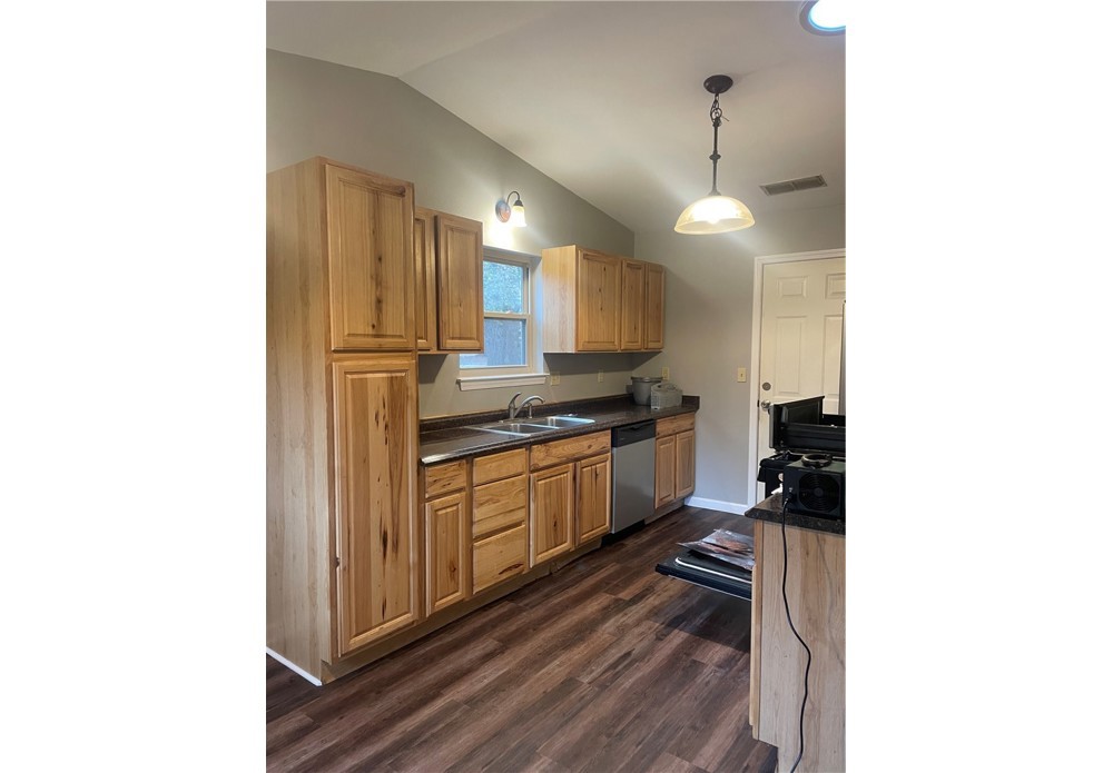 Lovely 3 bedroom, 2 full bath single family home in Fayetteville. Large open living room with luxury vinyl plank, fireplace and ceiling fan. Eat-in kitchen dining area. Fabulous kitchen with all appliances including full-size refrigerator, microwave, gas cook stove and lots of oak cabinets and drawers. Bedrooms are good-sized. Primary bathroom has a walk-in shower. Washer and dryer hook ups only. Luxury vinyl plank throughout home. 2 car garage. Big yard, large trees, partially fenced. Note: Fireplace is in-operable. Tenant occupied until 7/31. Application fee $25 per adult. Security Deposit $1,750. Cleaning Fee $350.