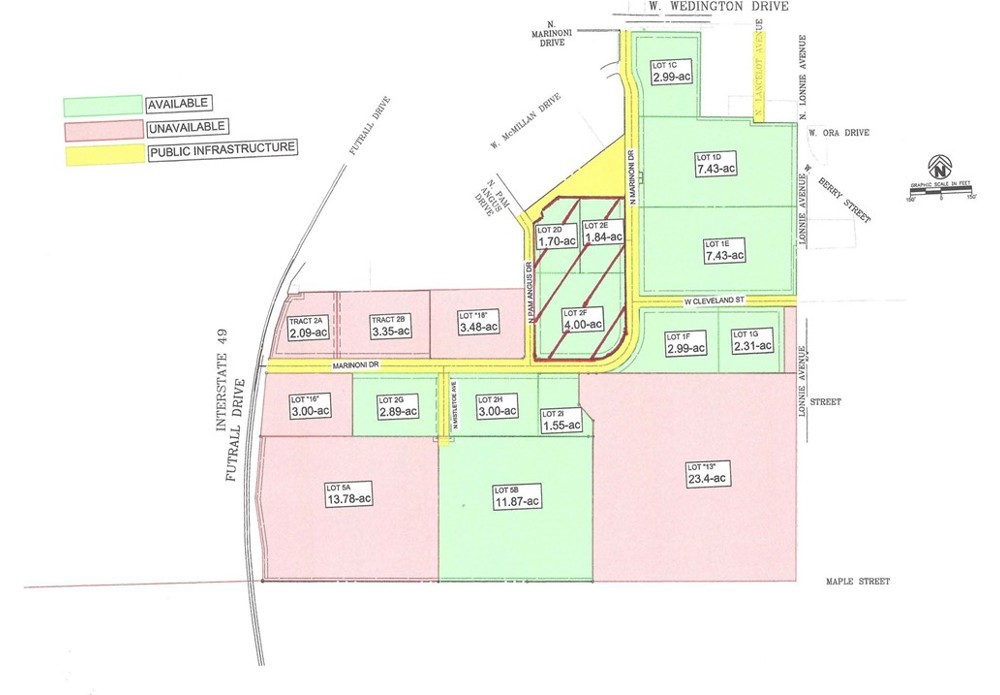 Centrally located large property zoned UT - Urban Thoroughfare, high density, mixed use, up to 7 stories and administrative approval. Also, a Certified Opportunity Zone. Property to the east and south is also available if you need more. Incredible street frontage. Marinoni Drive is a 3-lane street. PAM Angus Drive is a direct route to the newly improved access to I-49. 3 lots can each be divided up to 4 lots each with administrative approval. Lots of options for usage. On the entire property there is a double flag Marriott, a double flag Hilton and a Hyatt Hotel going in now. Along with 2 sit-down restaurants, a coffee shop, a multi-use project and 2 large apartment complexes, all in progress. The entire south border of the overall property borders the City of Fayetteville trails park and the 18-mile traverse trail cuts through at that location. Wedington Drive is the main west entrance to the City of Fayetteville and the University of Arkansas.