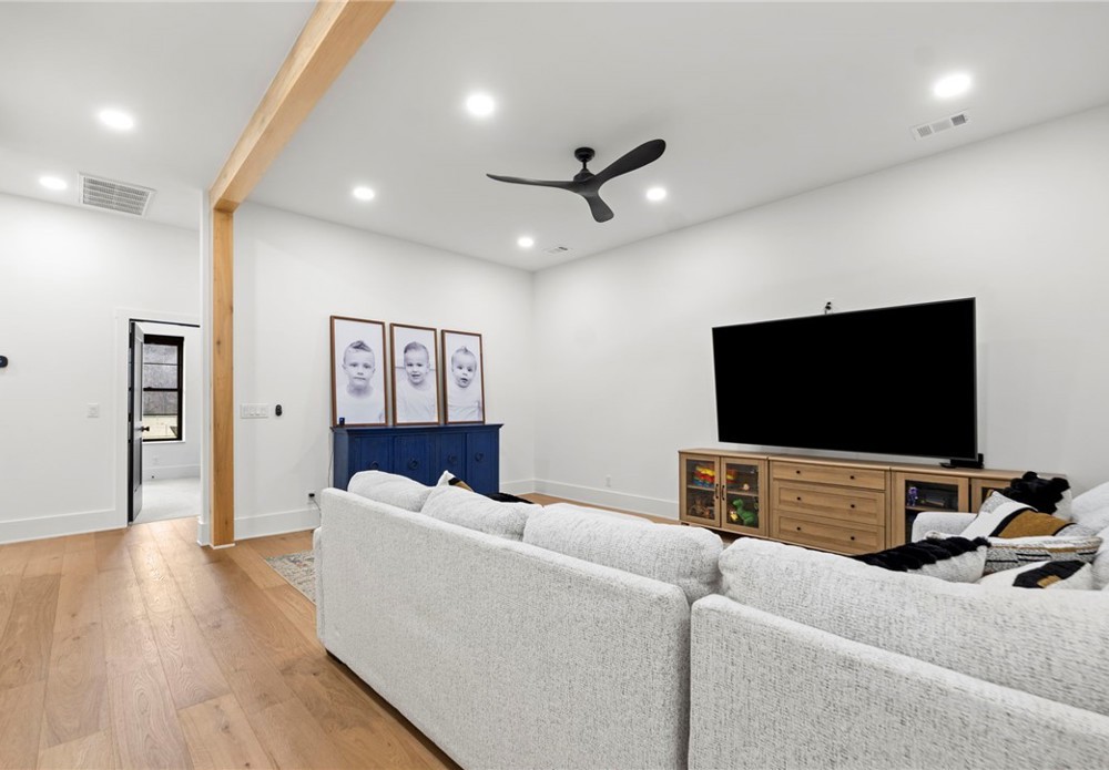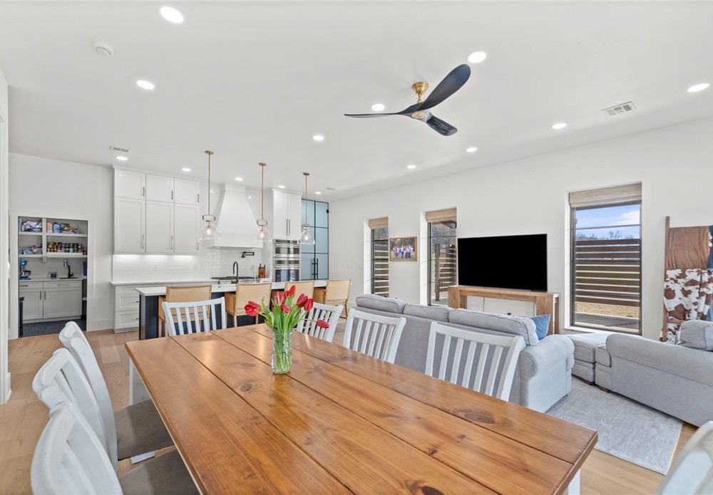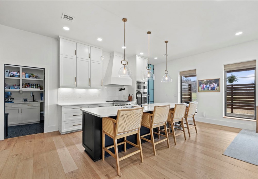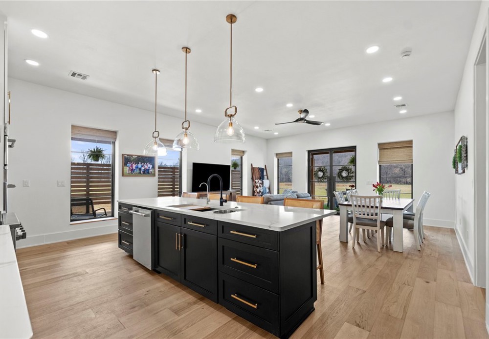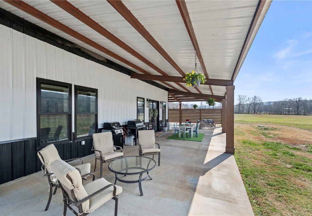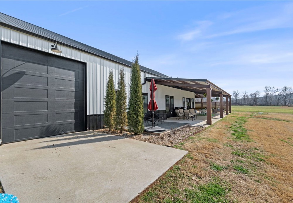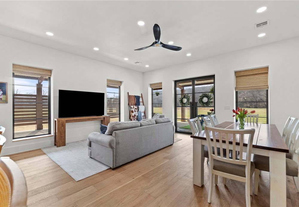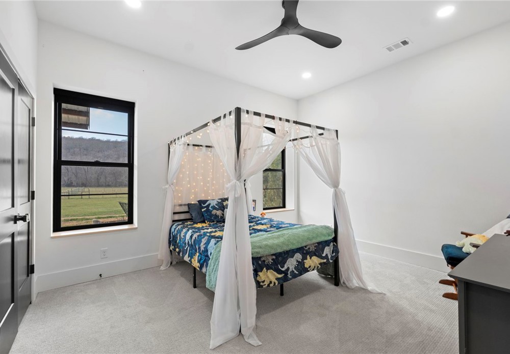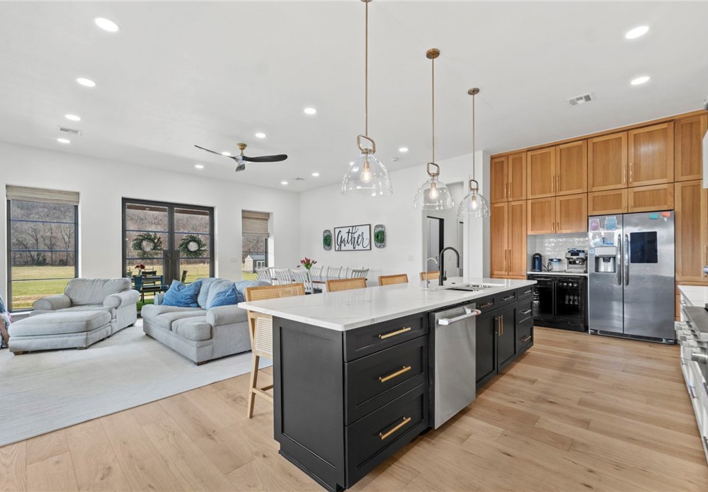 Modern farmhouse estate on 10 private acres in Prairie Grove with direct frontage along Sulphur Fork Creek. This 4-bedroom, 3-bath residence features 10-foot ceilings throughout, hardwood flooring, black-framed windows, red iron building construction and a seamless open layout designed for both entertaining and everyday living. The chef’s kitchen offers custom cabinetry, double ovens, an oversized island, and an expansive walk-in pantry. Dedicated office and bonus room provide flexibility. Outdoors includes a private pond, covered patio, and a 1,000 sq ft shop with 12-ft pull-through doors on both sides. A rare blend of refined design and functional acreage.