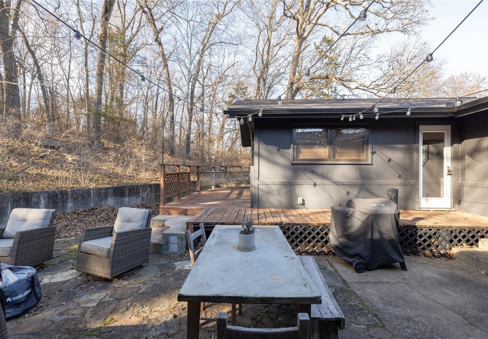 Well-maintained 3-bedroom home situated on a spacious 1.5-acre lot with convenient access to schools, shopping, and nearby trails. The home features numerous updates including a full kitchen remodel with new appliances, countertops, and lighting, along with a fully renovated bathroom with new bathtub, sink, shower tile, and floor tile. Additional improvements include fresh interior paint, newer windows, added bedroom built-ins, updated front door paint, new gutters, a professionally installed permanent pest prevention system, and a roof replaced in 2022. The garage has been converted into approximately 400 sq ft of heated and cooled space (not included in the listed square footage), offering potential for a bonus room, bedroom, or additional flex space. Great east Fayetteville location near Lake Fayetteville and the Botanical Garden of the Ozarks, with easy access to I-49 and everything Fayetteville has to offer.
