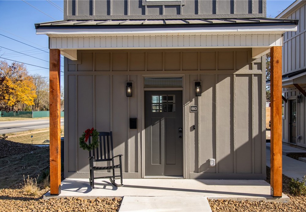 $160,000 base price for eligible buyers- affordable homeownership opportunity! List price reflects current appraised value; property includes $90,000 affordability assistance through a community land trust, making the buyer’s base price $160,000. Eligible buyers must meet income limits and fulfill all program requirements to acquire home. Owner occupancy required. Downtown Springdale living just 0.3 miles from Razorback Greenway, restaurants, shopping and parks. This cottage-style home features an open main floor living area with kitchen, half bath, bistro dining space and utility closet, plus two upstairs rooms (bedroom and bunk room/office), a full bath and loft landing. Features include tall ceilings, Ring doorbell, keyless entry, gutters, blinds & 1 dedicated parking space. Enjoy outdoor living with covered porches, common area & HOA-maintained grounds in The Hideaway Community. Acreage & fencing listed reflect entire HPR community grounds. Some photos & virtual tour may not be of actual home but are similar.