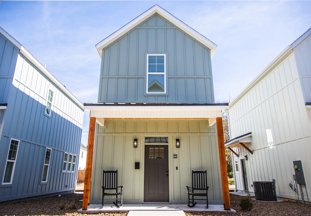 $160,000 base price for eligible buyers- affordable homeownership opportunity! List price reflects current appraised value; property includes $90,000 affordability assistance through a community land trust, making the buyer’s base price $160,000. Eligible buyers must meet income limits and fulfill all program requirements to acquire home. Owner occupancy required. Downtown Springdale living just 0.3 miles from Razorback Greenway, restaurants, shopping and parks. This cottage-style home features an open main floor living area with kitchen, half bath, bistro dining space and utility closet, plus two upstairs rooms (bedroom and bunk room/office), a full bath and loft landing. Features include tall ceilings, Ring doorbell, keyless entry, gutters, blinds & 1 dedicated parking space. Enjoy outdoor living with covered porches, common area & HOA-maintained grounds in The Hideaway Community. Acreage & fencing listed reflect entire HPR community grounds. Some photos & virtual tour may not be of actual home but are similar.