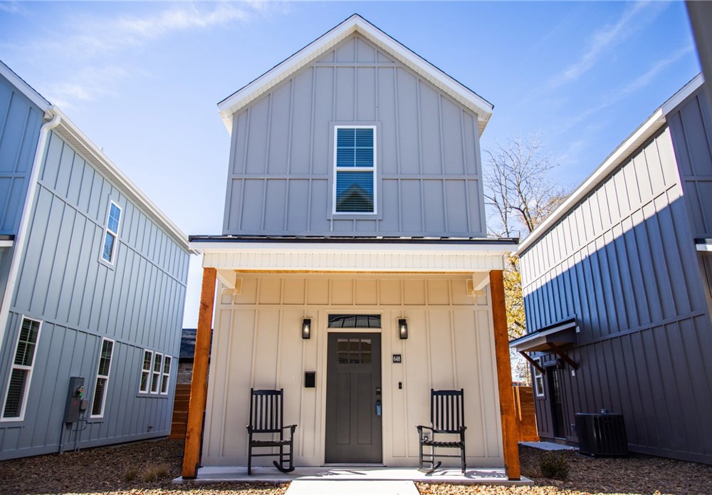 $160,000 base price for eligible buyers- affordable homeownership opportunity! List price reflects current appraised value; property includes $90,000 affordability assistance through a community land trust, making the buyer’s base price $160,000. Eligible buyers must meet income limits and fulfill all program requirements to acquire home. Owner occupancy required. Downtown Springdale living just 0.3 miles from Razorback Greenway, restaurants, shopping and parks. This cottage-style home features an open main floor living area with kitchen, half bath, bistro dining space and utility closet, plus two upstairs rooms (bedroom and bunk room/office), a full bath and loft landing. Features include tall ceilings, Ring doorbell, keyless entry, gutters, blinds & 1 dedicated parking space. Enjoy outdoor living with covered porches, common area & HOA-maintained grounds in The Hideaway Community. Acreage & fencing listed reflect entire HPR community grounds. Some photos & virtual tour may not be of actual home but are similar.