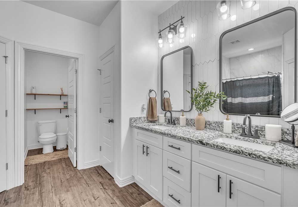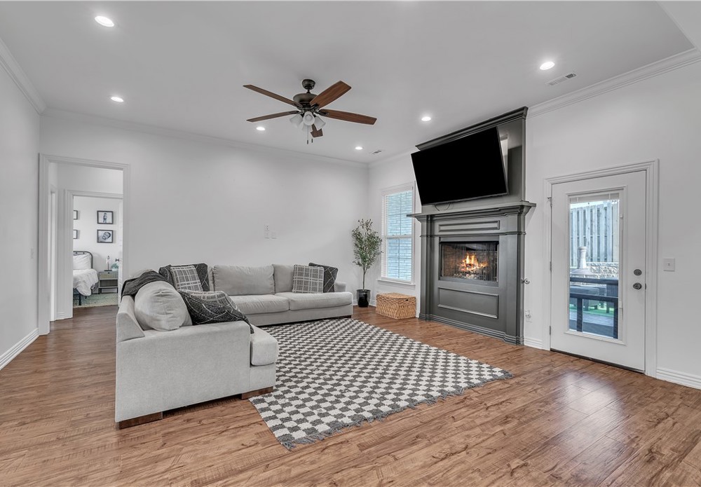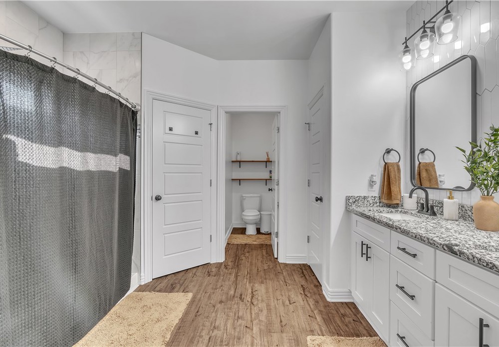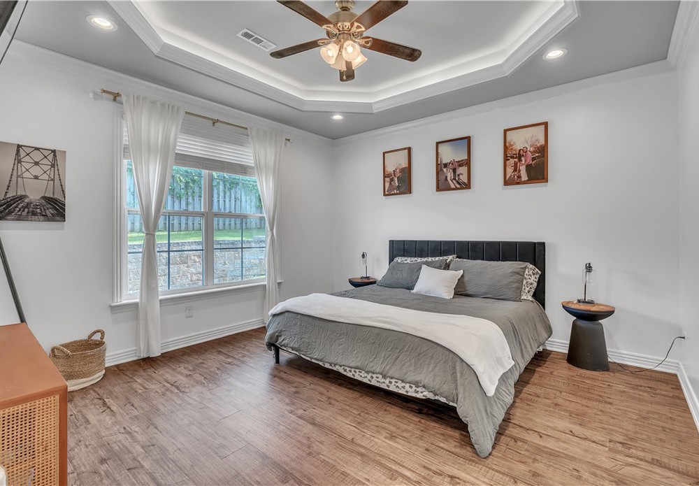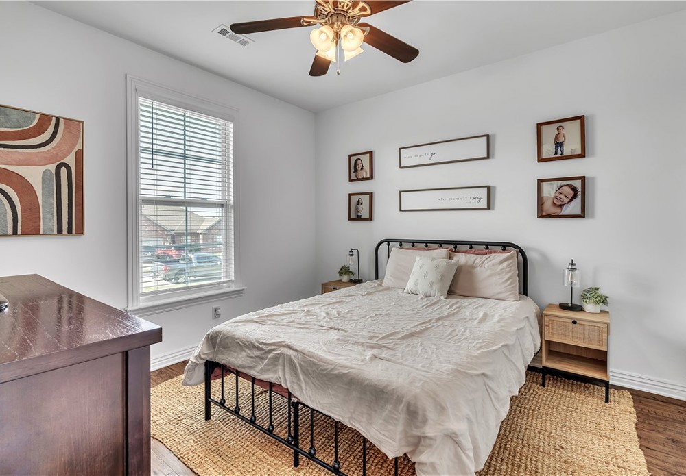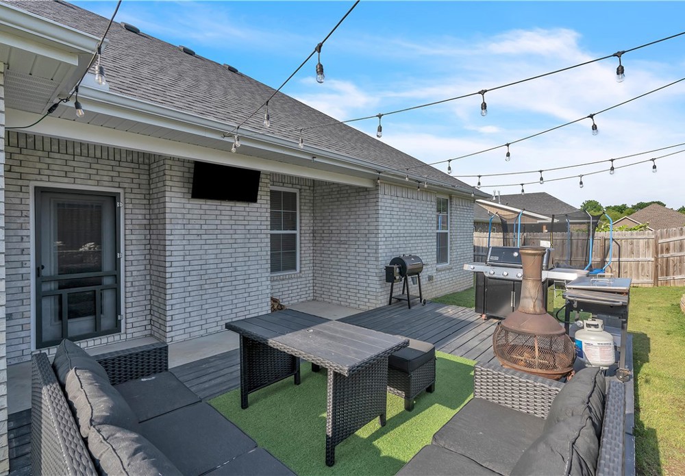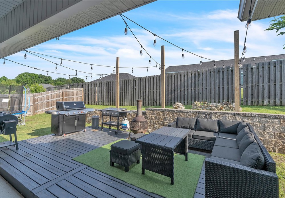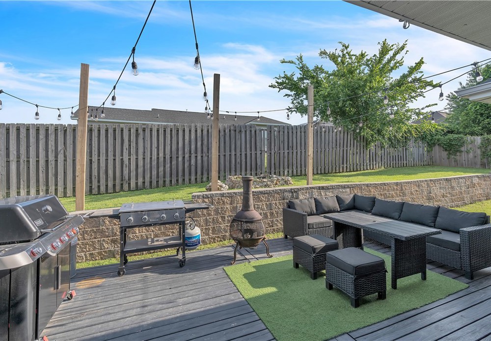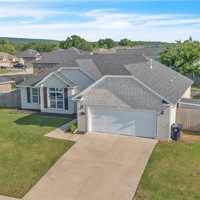 Spacious and well-maintained home with stylish modern touches! Warm wood flow throughout every room in this split floor plan. The layout offers privacy with bedrooms on opposite sides of the home, which the central living space is bright and open- perfect for everyday living and entertaining. All closets offer generous storage, and the pantry is a standout feature! Step outside to enjoy the added perk of a newly built deck in the backyard, ideal for relaxing or hosting guests. Located in Prairie Grove, you'll enjoy convenient access to a water park, state park, shopping, restaurants, and a charming historic downtown filled with flea markets and antique malls.