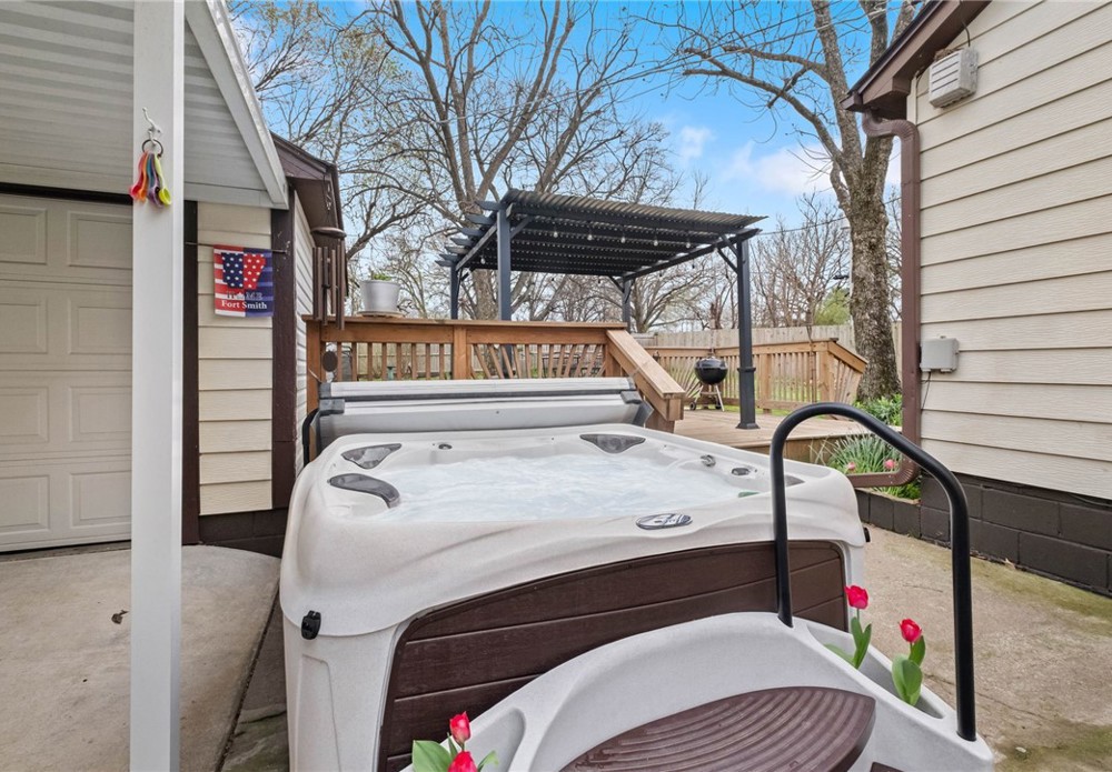 PERFECT AIRBNB, INVESTMENT RENTAL, COLLEGE STUDENT HOME, PROFESSOR, RETIRED FAMILY! Come see this extremely well-maintained home, VERY close to UAFS, offers 3 bedrooms, 1 bathroom (fully gutted/remodeled), hardwood floors (originals), spacious considering the lower SF, open living area, good size kitchen with a walk-out area to a HOT TUB, covered carport with a great decked backyard for visitors/entertainment or gazing at the stars at night, enjoy complete privacy backyard, as well as a great storage building very clean and ready for you to convert into your own man cave/she shed (easily can be a hobby area or office outside of the home). GREAT opportunity and affordable! Let's talk! Call today for a showing! Safe will stay and furnishings are up for discussion! Turnkey READY!