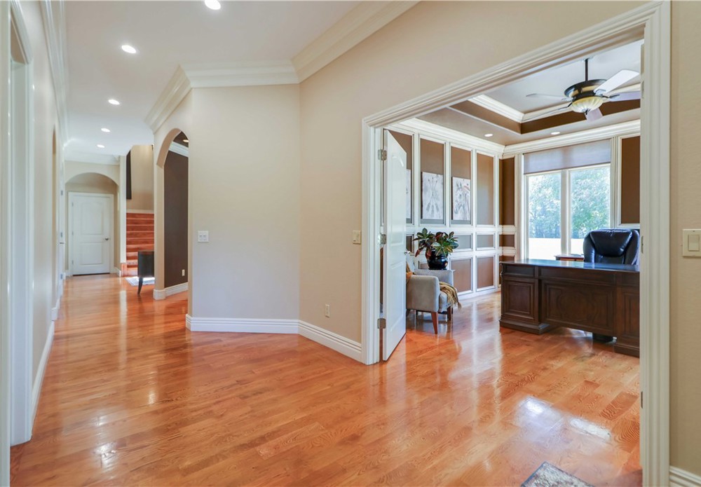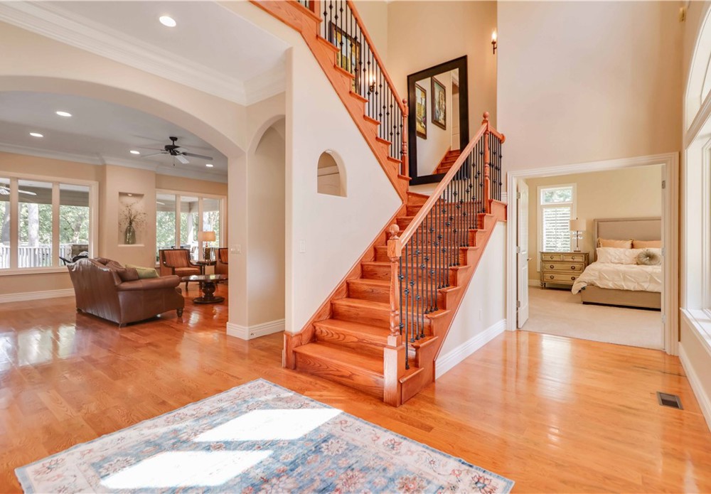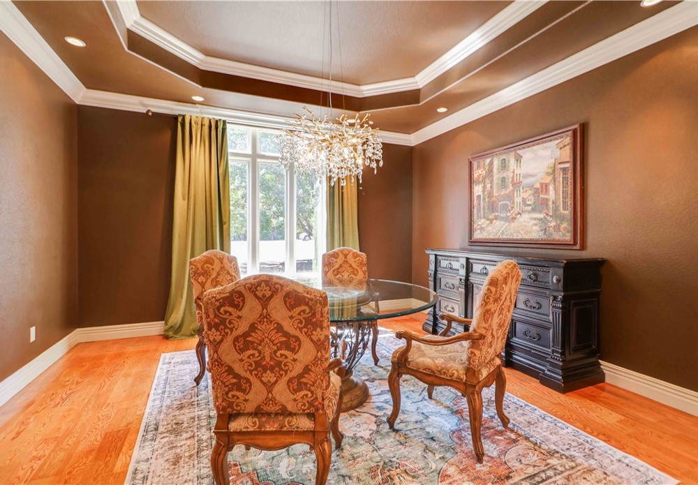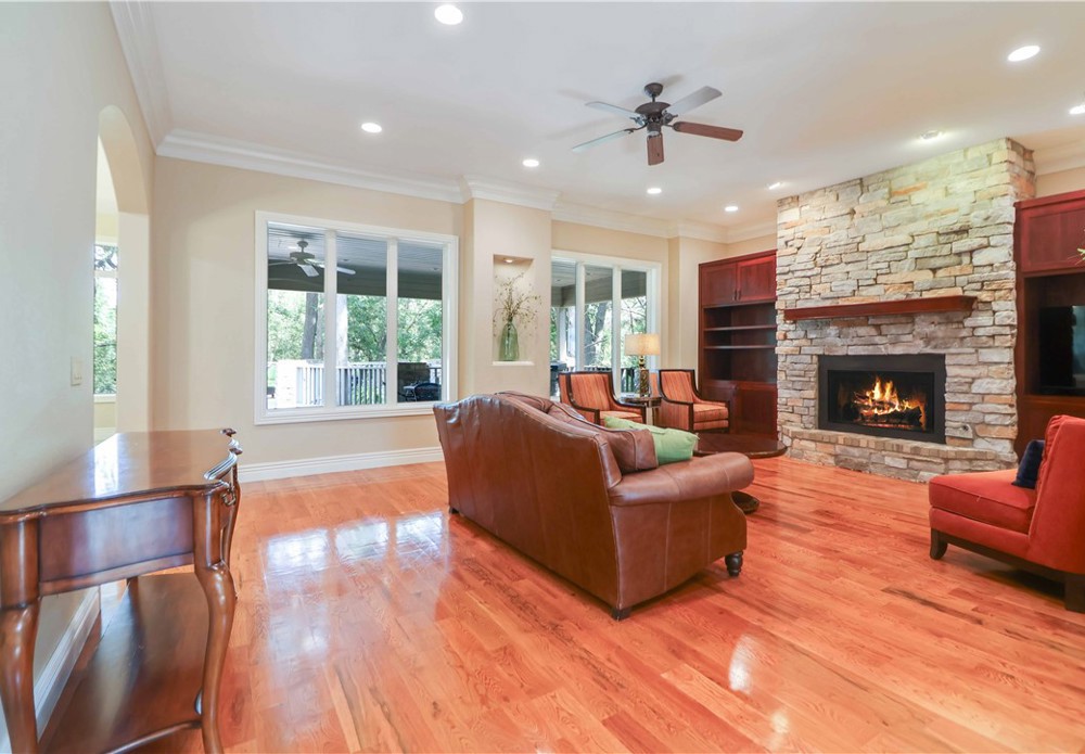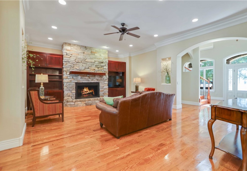This home sits on 2 acres.Step into a dramatic 20-foot entryway leading to a formal living room with a stacked stone fireplace, a formal dining room, office, and a family/media room.Hardwood floors, new carpet and paint, plantation shutters, and double crown molding showcase the home’s quality finishes. The chef-worthy kitchen features travertine and stainless steel appliances. The primary suite provides spa-like comfort with walk-in closets and a luxury bath. Upstairs, you’ll find three additional bedrooms—one with an en-suite bath with two connected by a Jack & Jill—as well as a game room, bar, and French doors opening to a deck.The third floor has a spacious en-suite, perfect for teenagers or guests seeking privacy. Multiple outdoor living areas, covered decks, professional landscaping, irrigation system, and a 3-car garage complete the property. Residents also enjoy access to s/d amenities including a community pool, pool house, tennis and pickleball courts, and scenic trails.