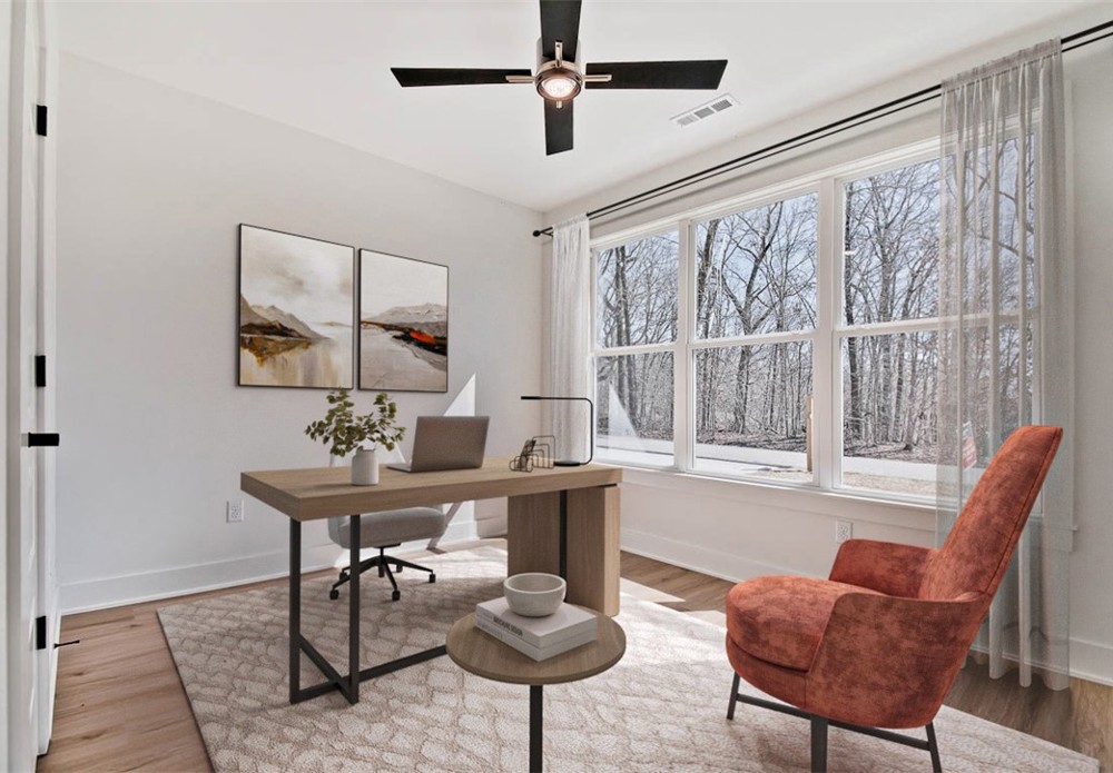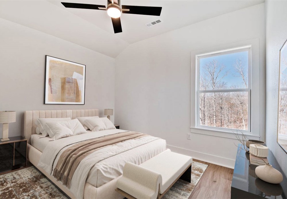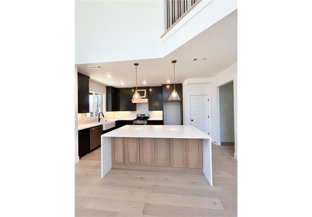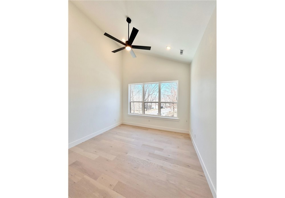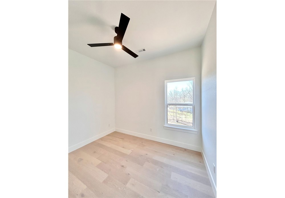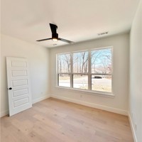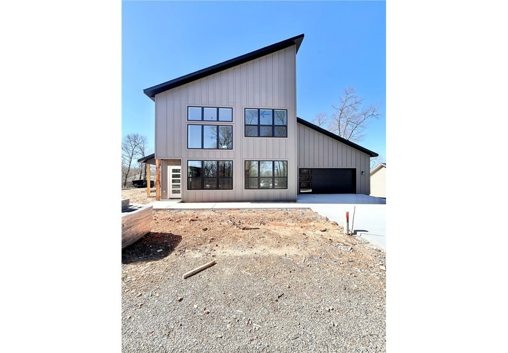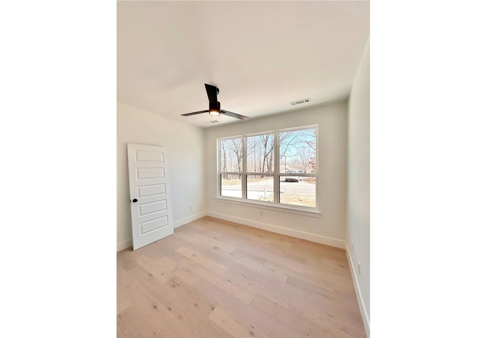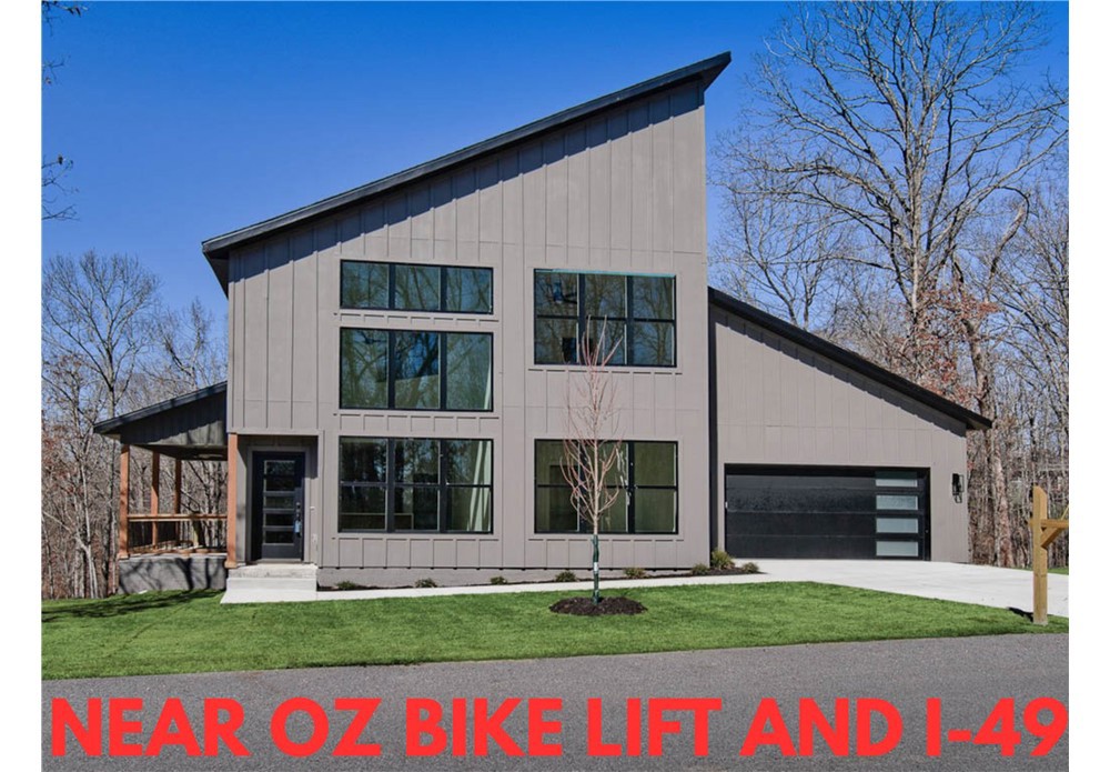 This modern new construction home sits on a large .30 acre wooded lot down the street from the Tunnel Vision Trail Crossing and near OZ Bike Lift, Lake Windsor, and provides easy access to Bentonville! Bentonville schools! Wood floor throughout! 2BD's + office. Step inside to discover beautiful floor-to-ceiling custom cabinets and a huge waterfall island, perfect for entertaining family and friends. The kitchen is also equipped with stainless steel appliances, including a gas range. Breathtaking two-story living room with huge windows going up to the ceiling! Retreat to the primary suite with a stunning walk-in tile shower that elevates your everyday routine. Guest bedroom is located on the main level. As a bonus, the buyer can receive $3,500 in closing costs when using the builder's preferred lender.