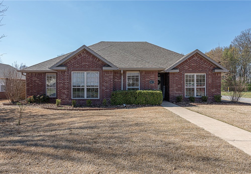 ATTN INVESTORS & FIRST TIME HOME BUYERS! This 3 bed 2 bath home with 2 car garage & oversized driveway is located near parks, schools, shopping & business districts in W. Fayetteville & a short drive to I-49 & University of Arkansas! Situated on a corner lot w/ front landscaping this home is just what you have been looking for! Head inside to the living room w/ corner gas log fp, crown molding, & luxury vinyl plank flooring! Enjoy a kitchen w/ ample storage, Corian counters, tiled backsplash, peninsula w/ room for seating, & an eat-in dining area. Through the kitchen & connecting to the entry a formal dining space with wainscoting details perfect for entertaining! Relax in the spacious primary suite w/ natural light, tray ceiling, lVP flooring & private ensuite feat: double sink vanity, linen storage, shower, & jacuzzi tub! Enjoy two addt'l bedrms & an addt'l full bath! Enjoy the sun/mud room on your way to the fully fenced in backyard w/ stone paver patio perfect for a firepit & enjoying the upcoming summer!