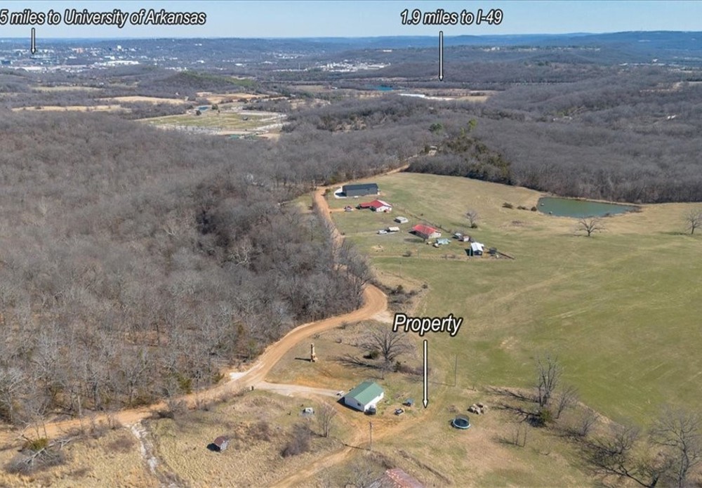 An incredible opportunity to own 4.31 acres in the heart of South Fayetteville, offering the perfect balance of privacy, convenience, & breathtaking views. This prime location with new construction homes being built in the neighborhood, is just minutes from the University of Arkansas, downtown Fayetteville, & HWY 49. Plus, it's only a 1/4 mile walk to the Kessler Mountain trailhead, providing access to Kessler Mountain Regional Park & the South trailhead of the Razorback Greenway trail system. With stunning panoramic views of the Boston Mountains, this property is an ideal setting for your dream home. Located just outside the Fayetteville city limits, you'll enjoy peaceful country surroundings, abundant wildlife, & a sense of seclusion while remaining close to all that NWA has to offer. The cozy living quarters feature an open floor plan, kitchenette, bathroom, shower, vanity & commode, making it a perfect place to live or stay while building your dream home. Property is being sold "As Is" & value is in the land.