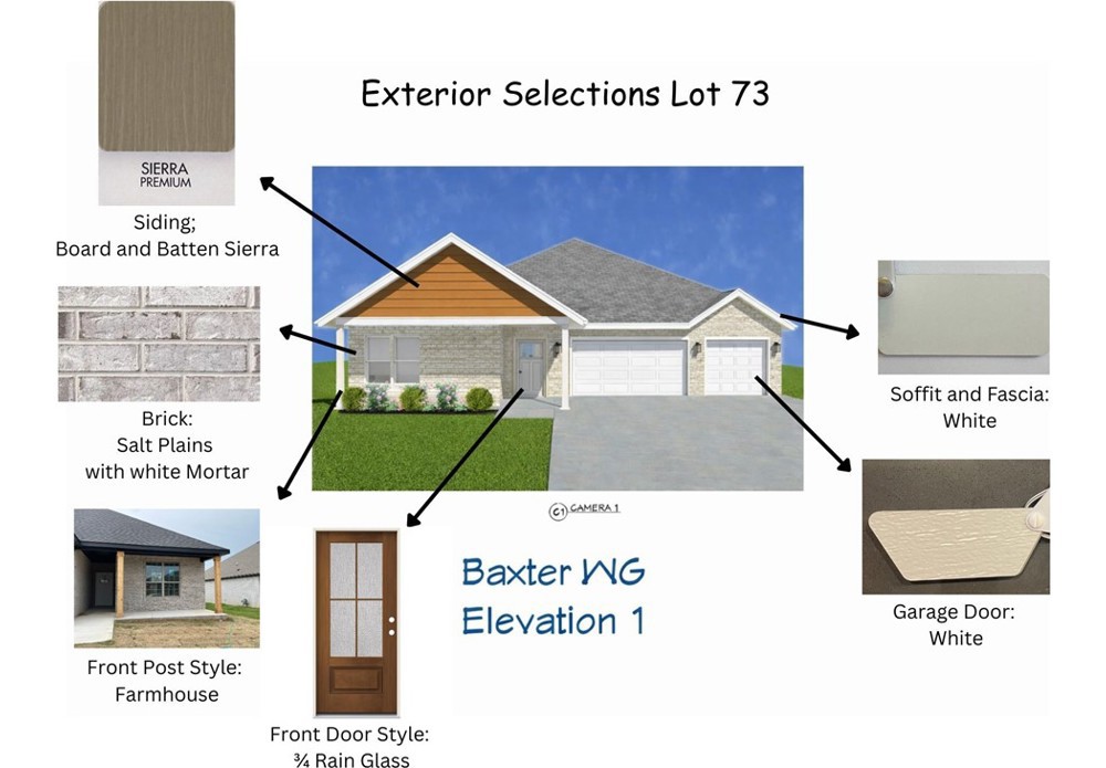 Experience the Baxter E1 plan at Walnut Grove. This plan offers refined single-level living with four bedrooms and two baths, thoughtfully curated for both comfort and sophistication. This home showcases a three-car garage and an expansive open-concept design highlighted by soaring vaulted ceilings with elegant beam detailing and a striking gas log fireplace. The gourmet kitchen boasts custom, soft-close cabinetry, a gas range with a fully vented hood, built-in microwave, and walk-in pantry, blending beauty and function. The primary suite serves as a private retreat, featuring a spacious walk-in shower and abundant storage within the dual vanity. Outdoors, the covered back deck is equipped with gas and internet connections, creating an ideal setting for elevated entertaining and effortless relaxation.