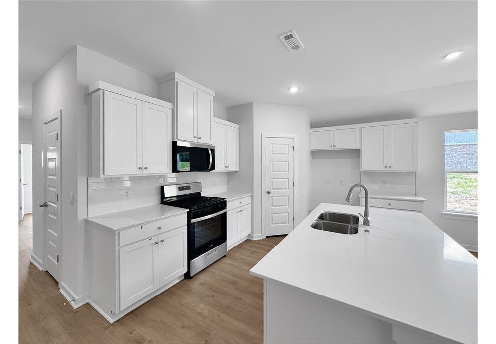 The Lovely Lakeway plan in The Element, in beautiful Fayetteville, AR! This home offers 4 bedrooms and 3 full bathrooms with a separate office space! Upon entering, you’ll find a spacious living room and kitchen with a dining room! The kitchen boasts beautiful quartz countertops, a gas range, and pantry. The primary bedroom features an ensuite with quartz countertops with double sinks and a walk-in shower! This home will have LVP flooring throughout. The exterior will feature brick and Hardie® siding per plan and a covered patio per plan. Homes in this neighborhood are equipped with a programmable thermostat which allows you to effortlessly control your environment with the touch of a button. Landscape package! Garage Door opener! Taxes and parcel number TBD.