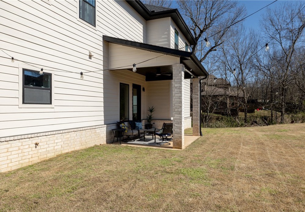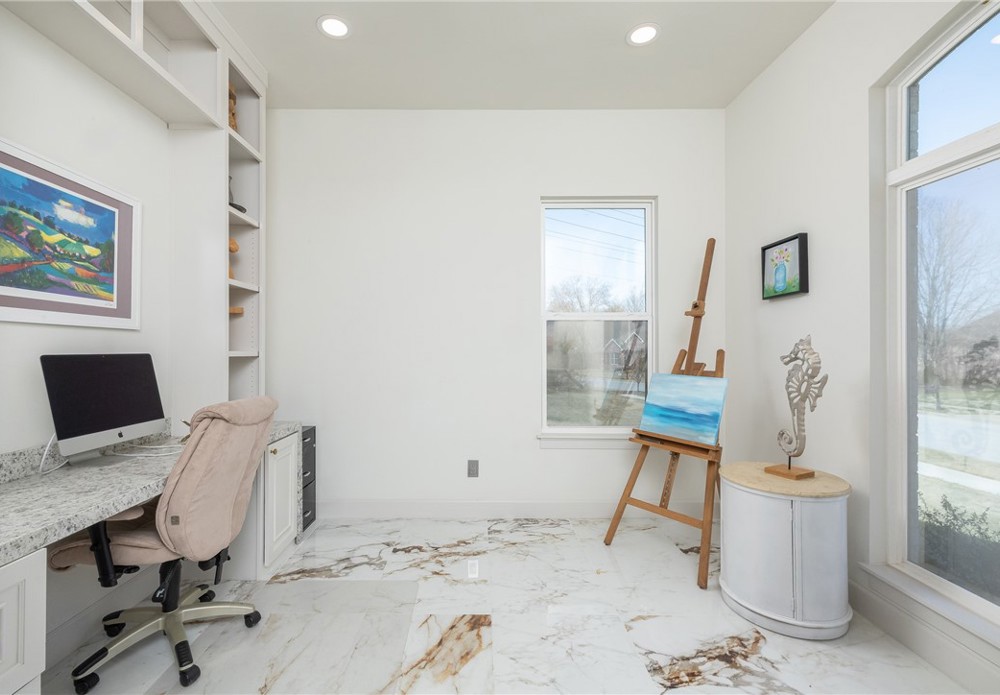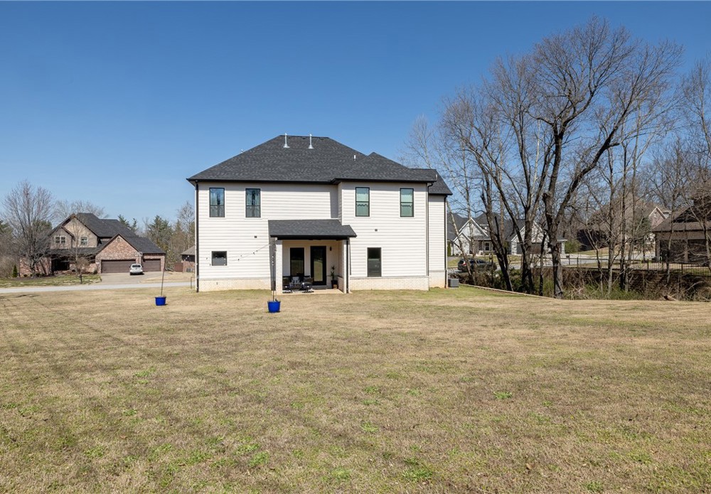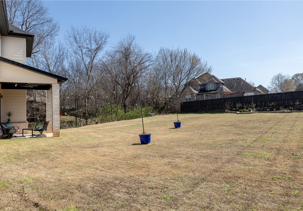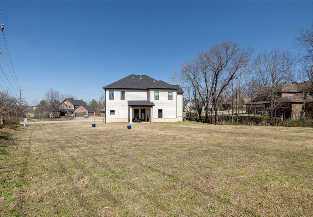 Like-new & beautifully maintained, this West Fayetteville home offers a clean, modern aesthetic with a functional open layout for everyday living & entertaining. Dedicated office with double door entry & built-in desk sits just off the entry, along with a convenient half bath. Beautiful tile flooring runs throughout the main living areas, connecting formal dining to the kitchen with granite countertops, gas cooktop, microwave, pantry & large waterfall island, opening to the breakfast area & living room, anchored by a gas fireplace. Second level includes a landing with built-in desk, bedroom with ensuite bath, two additional bedrooms & a full bath, plus a spacious primary suite with two walk-in closets & a spa-like bath with walk-in shower, soaking tub & dual vanity. Set on a 0.55-acre lot with tree preservation for added privacy, the home includes a covered patio for outdoor living. Neighborhood offers a pool & playground with easy access to I-49 and close to parks, dining, shopping & everyday conveniences.