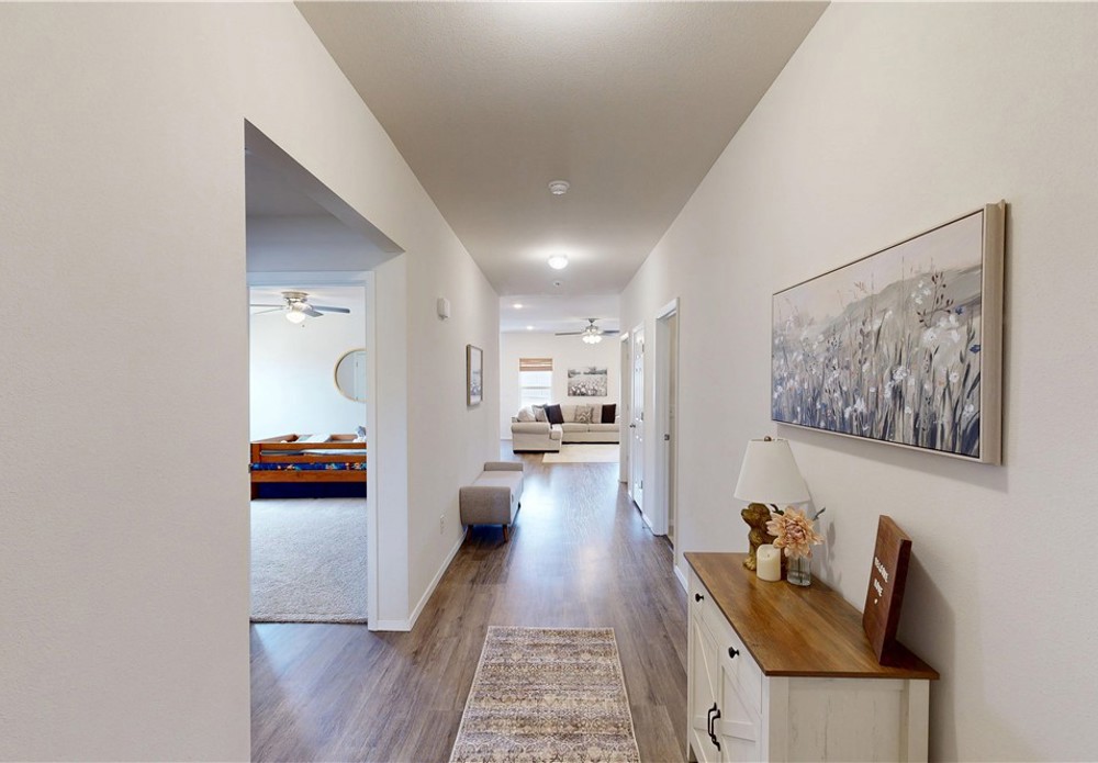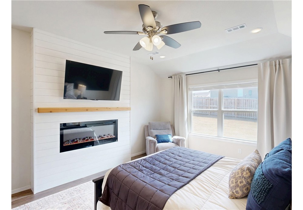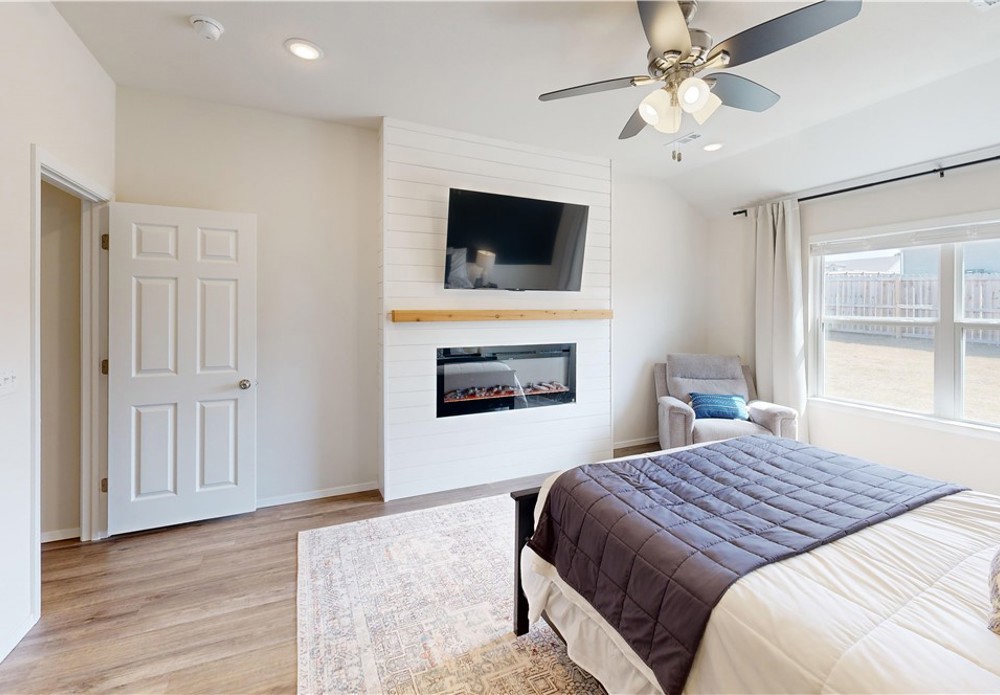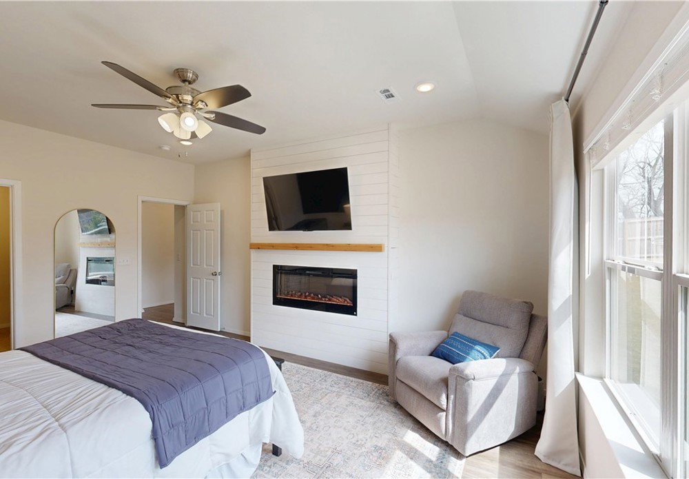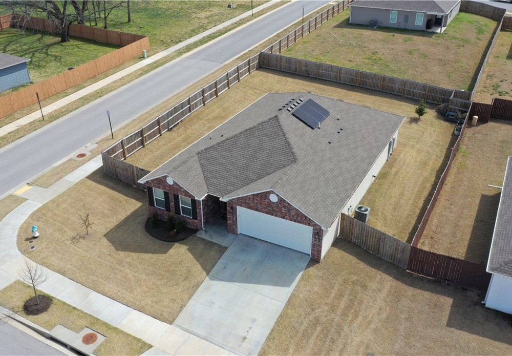 Welcome to this beautiful, bright, and airy home featuring 3 beds, 2 baths, a split floor plan, with open living spaces located in west Fayetteville in Crystal Springs Subdivision. This home offers durable and neutral LVP flooring throughout the house with tile in the bathrooms, granite countertops in the kitchen and bathrooms, 9-foot ceilings in the common living spaces, a spacious open floor plan centered around island seating, and a designated dining area. Relax in the primary suite with a beautiful, custom-built electric fireplace, a large shower, and an oversized walk-in closet for all your storage needs. A covered patio and fully fenced back yard are perfect for playing, gathering, or a pet’s private oasis! Close to hiking and biking trails, walking distance to Underwood Park (opening this summer!), shopping, schools, the U of A, and minutes from I-49. You don’t want to miss this lovely, one-owner, well-maintained home! Solar panels owned and convey with the home. Enjoy cost-savings on your electric bills!