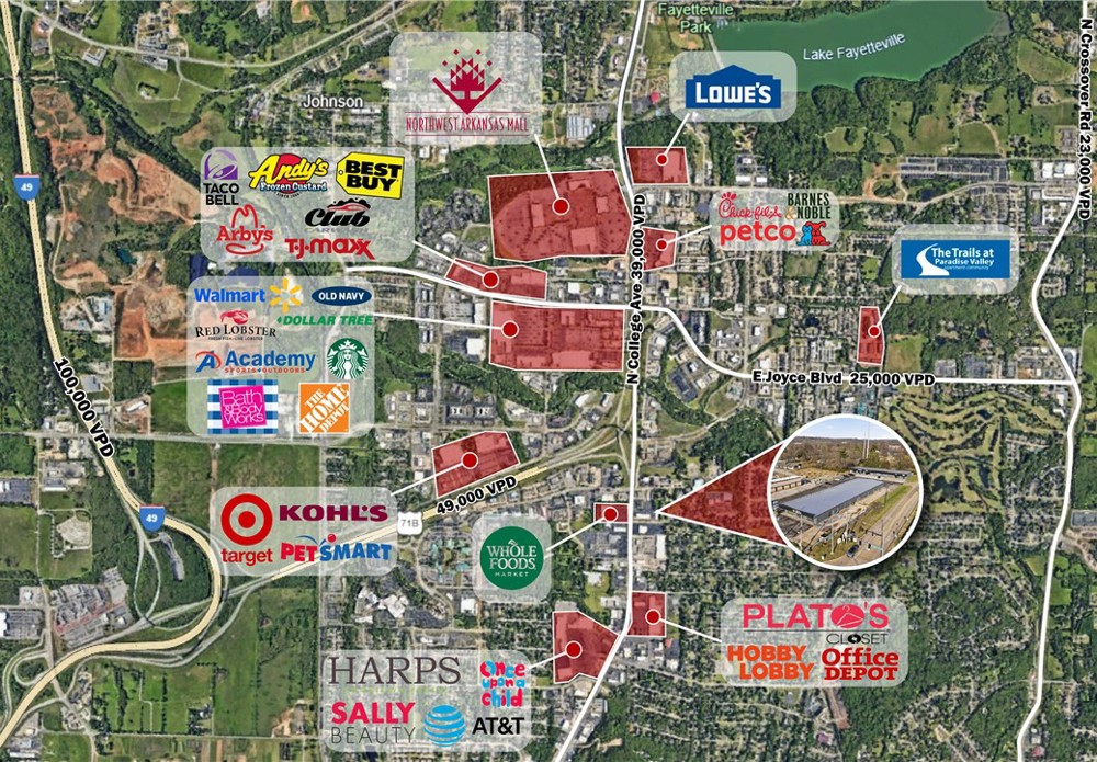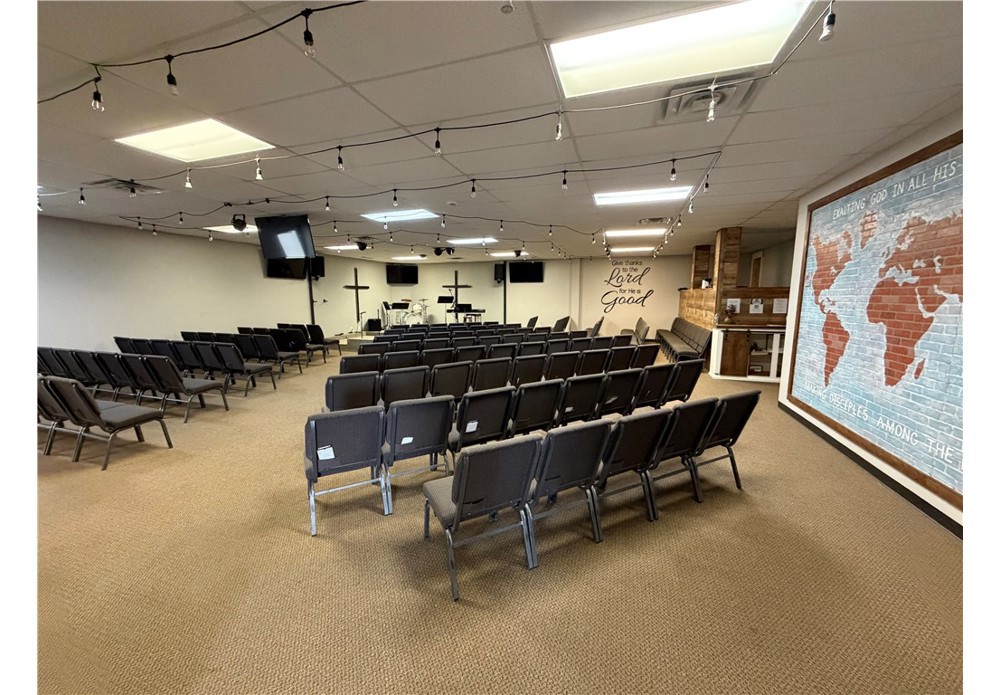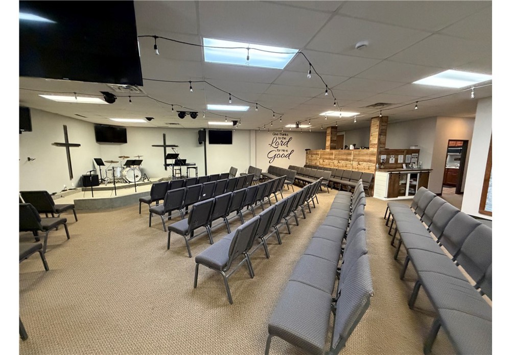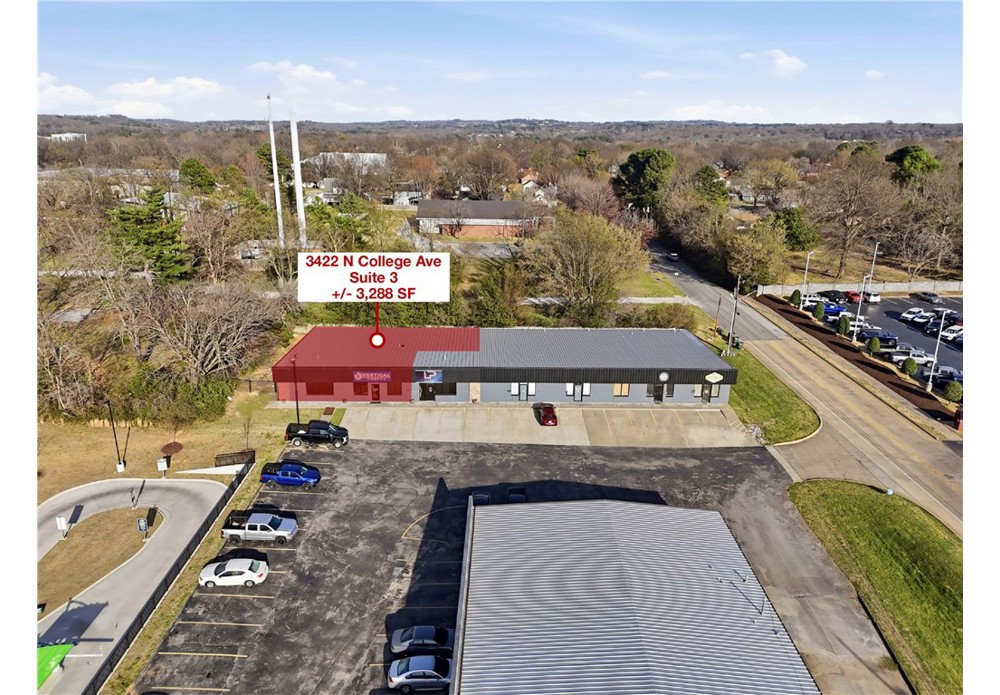 Versatile +/- 3,288 SF space available for lease in a high-visibility location off N College Ave, which see approx. 33,000 VPD and offers convenient access to the US-71 on-ramp. Currently utilized as a church, the property is well suited for a wide range of uses including professional office, medical or therapy practice, retail, childcare, etc. The layout features 5 individual rooms that can function as private offices, conference rooms, patient rooms, or storage areas, along with 2 restrooms. An expansive open area provide flexibility for collaborative workspace, therapy activities, children's play areas, or event space and features a loft area. Additional amenities include a kitchen enhancing convenience. With its adaptable floor plan, strong traffic counts, and strategic location, this property presents an excellent opportunity for businesses seeking both visibility and flexibility.