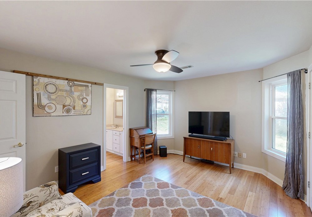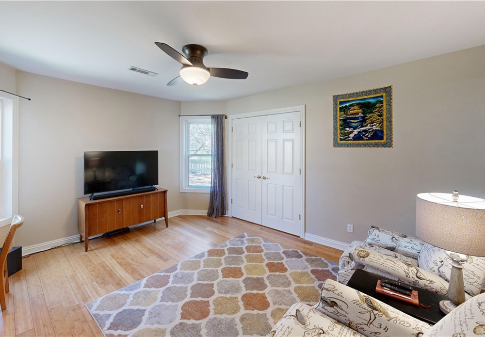 You’ve found the one! Meticulously cared for, updated, light-filled 4 bed, 3.5 bath in desirable East Fayetteville on a quiet cul-de-sac. This stunner features 2 spacious living areas, bamboo floors, crown molding & French doors, plus dramatic ceilings & large windows with peaceful backyard views & babbling creek. Gourmet kitchen includes 5-burner gas range, double ovens, wine fridge, island, custom cabinetry & pullouts. Main-level primary suite offers 2 over sized walk-in closets & modern yet timeless remodeled bath w/ double vanities, jetted tub & oversized shower. 2 additional beds on main share full double en suite bath; upstairs suite includes bonus room, wet bar & bath for guests or multi-gen living. Sun porch w/ skylights, large patio, garden shed & 3-car garage. Owned solar panels save hundreds on electric bills! Move-in ready with exceptional storage. Close to everything! This home is move in ready. Come see it and make it yours!