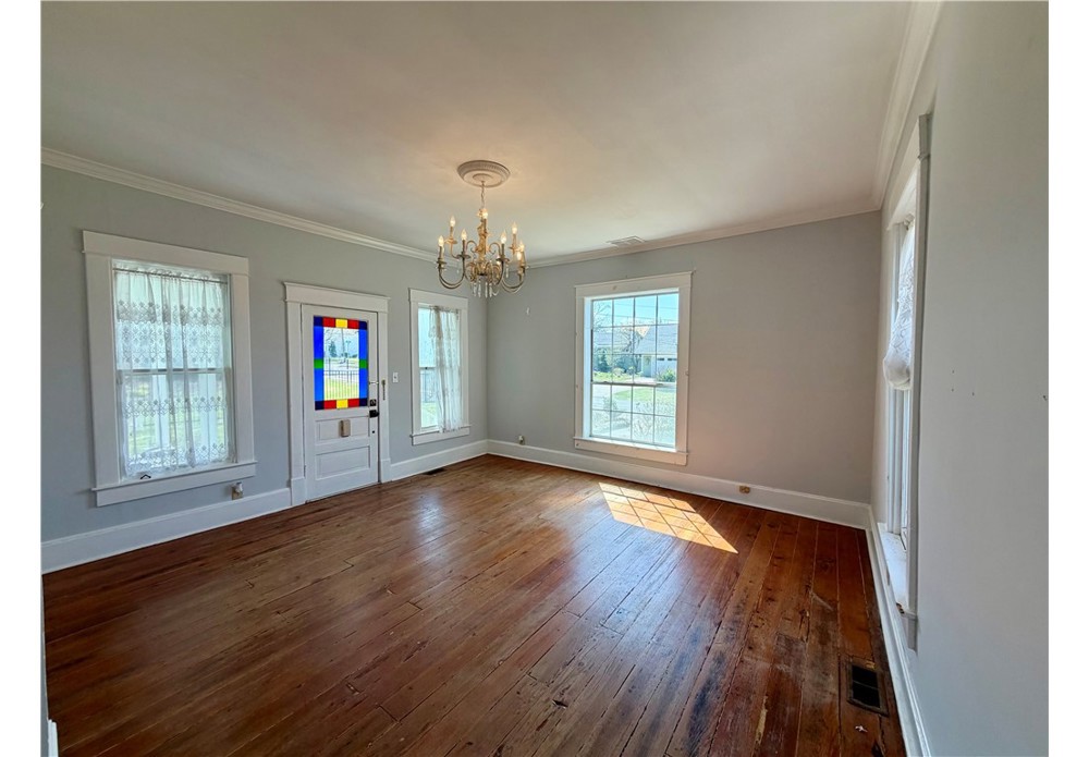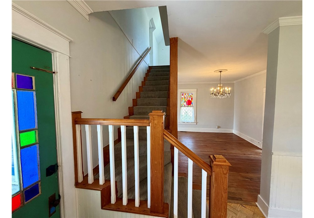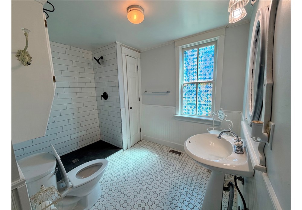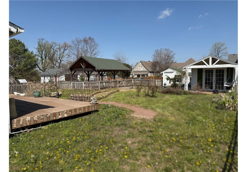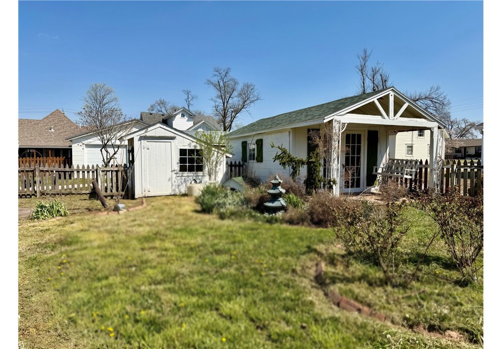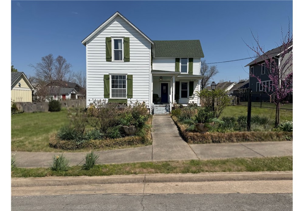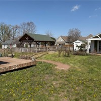 This 1904 beauty is just waiting for her next owner to bring her farmhouse charm to life. This 2 story charmer with an inviting front porch sits in the first platted subdivision in Rogers right next to the heart of Downtown Rogers. Her charm is evident as you enter through the stained glass door into a light filled living room. Beautiful stained glass also highlights the roomy dining room right off the kitchen. A sunroom with a large picture window offers a view of a backyard full of native heirloom plants. The sunroom leads to a wooden deck off the back of the house where you can sit in privacy to enjoy your privacy. The 2 car carport sits in the back of the home and is of modern post and beam construction. There is a delightful she shed/man cave/artist studio in the back yard along with another smaller shed for tools. The modern bath downstairs has a art deco vibe. The 3 bdrs upstairs with hall built ins are just begging for your touch! Just a short walk from shopping, restaurants, bars and all the fun of DTR!