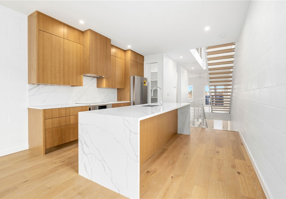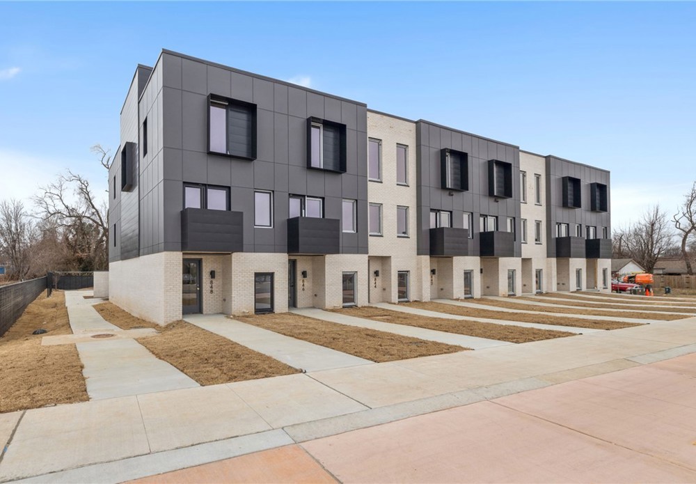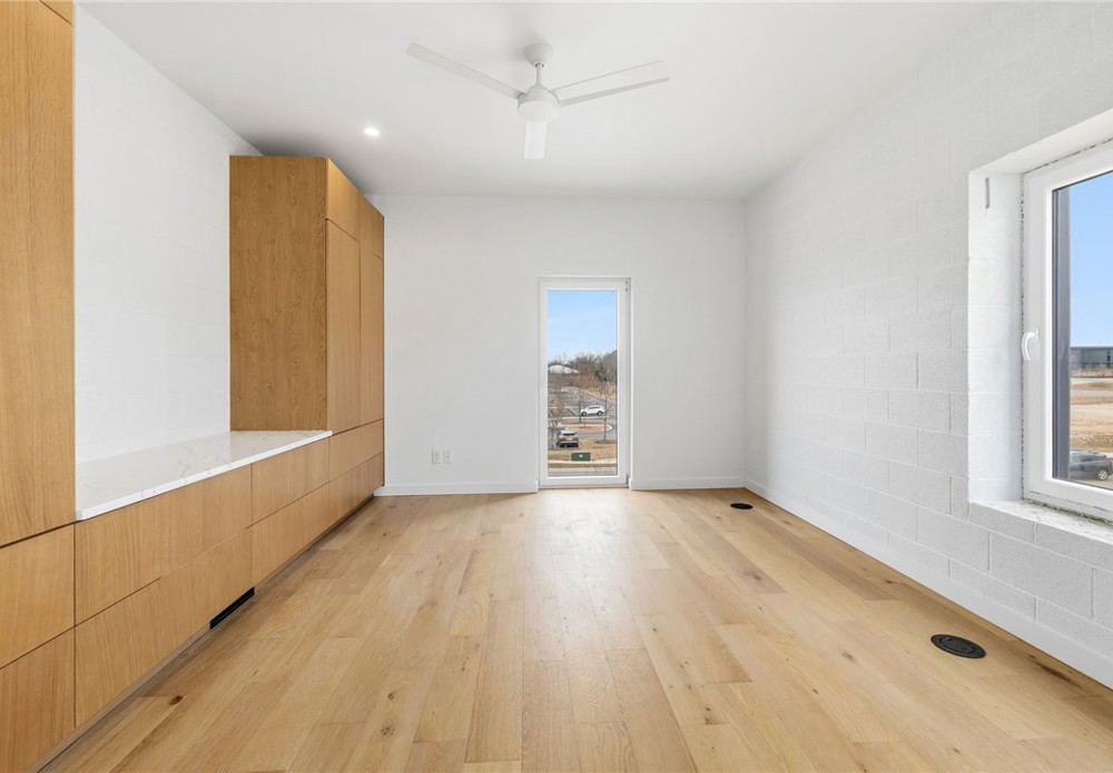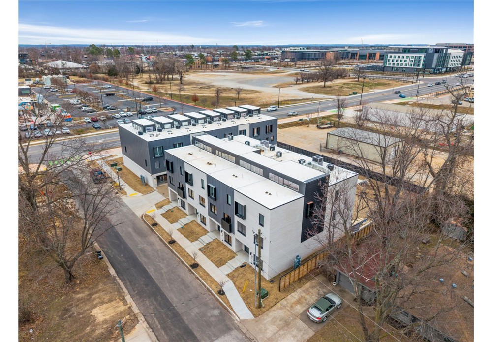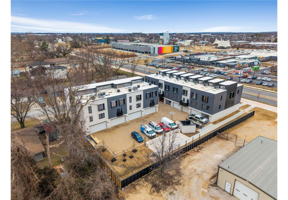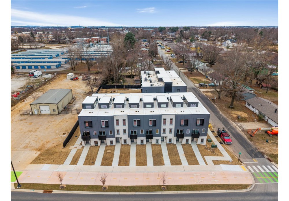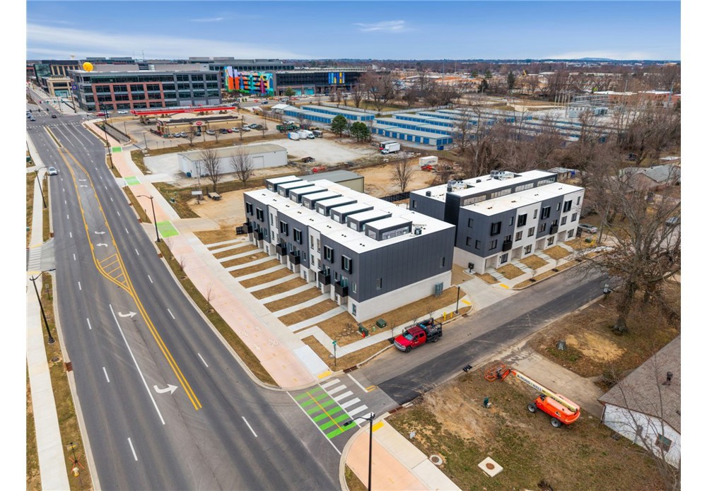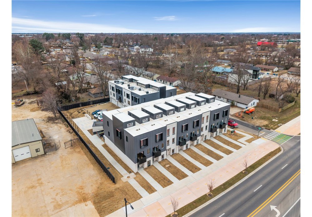 Enjoy the best of downtown Bentonville living in this luxury Lightbox townhome—designed for ones who want walkability, style, and smart design. Located just one block from the new Walmart Home Office campus and directly across from 8th Street Market, this North Light residence offers expansive northern views, including the Momentary. The architecturally striking design allows natural light to pour in from third-floor clerestory windows down through the open stairwell to the main living level, creating a bright, calm, and modern feel throughout. The kitchen blends form and function with a European Bosch appliance package, induction range, white oak cabinetry, and bold quartz countertops. Across the catwalk, the living area is framed by oversized windows—perfect for relaxing or entertaining with a view. Upstairs, two private bedroom suites each feature their own bath, offering flexibility for guests, work-from-home space, or a refined second-home lifestyle—all just steps from Bentonville’s dining, arts, and trails.