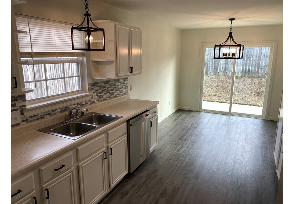 Recently updated 3 Bed Room, 2 Bath Room Home conveniently located in East Fayetteville, less than 10 minutes from the University of Arkansas. New Roof Installed 2023. Enjoy tall ceilings, newly installed wood-look LVP flooring, and modern light fixtures throughout. Relax in the fully fenced yard, on the patio, or the covered front porch. With a 2-car garage, off-street parking, and a nearby park with a playground, 1.5 miles from Stonebridge Meadows Golf Club - this home combines comfort with convenience. *24hr notice required for showing, Tenant Occupied do not disturb Tenant*