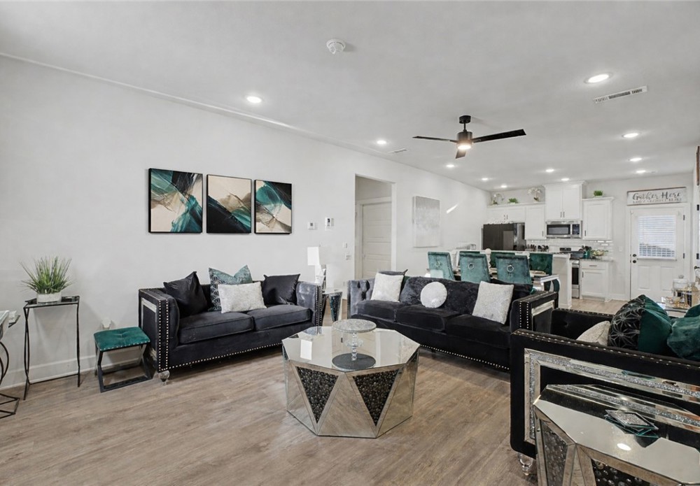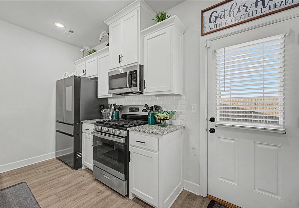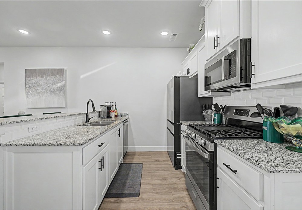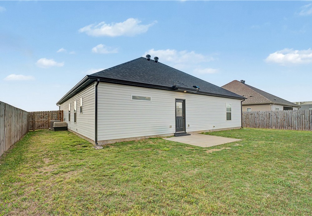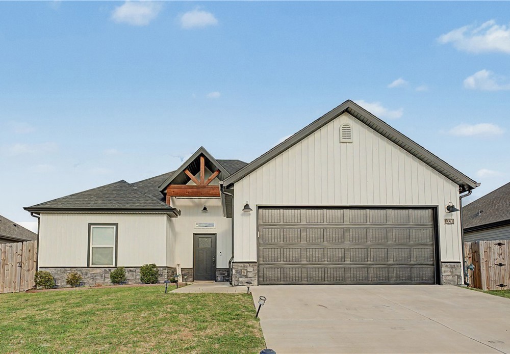 3-bedroom, 2-bath home with an open layout, split floor plan and low-maintenance finishes. The interior features luxury vinyl plank and tile flooring throughout—no carpet! The kitchen has granite counters, tile backsplash, gas range and pantry. The spacious primary suite bathroom includes a tiled walk-in shower and two walk-in closets. All bedrooms are well-sized, and there is ample storage throughout the home. The property also offers a fully fenced backyard with no rear neighbors. Located next to Bentonville West High School with quick access to downtown Bentonville and the new Walmart Home Office.