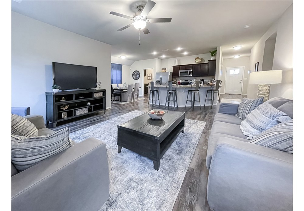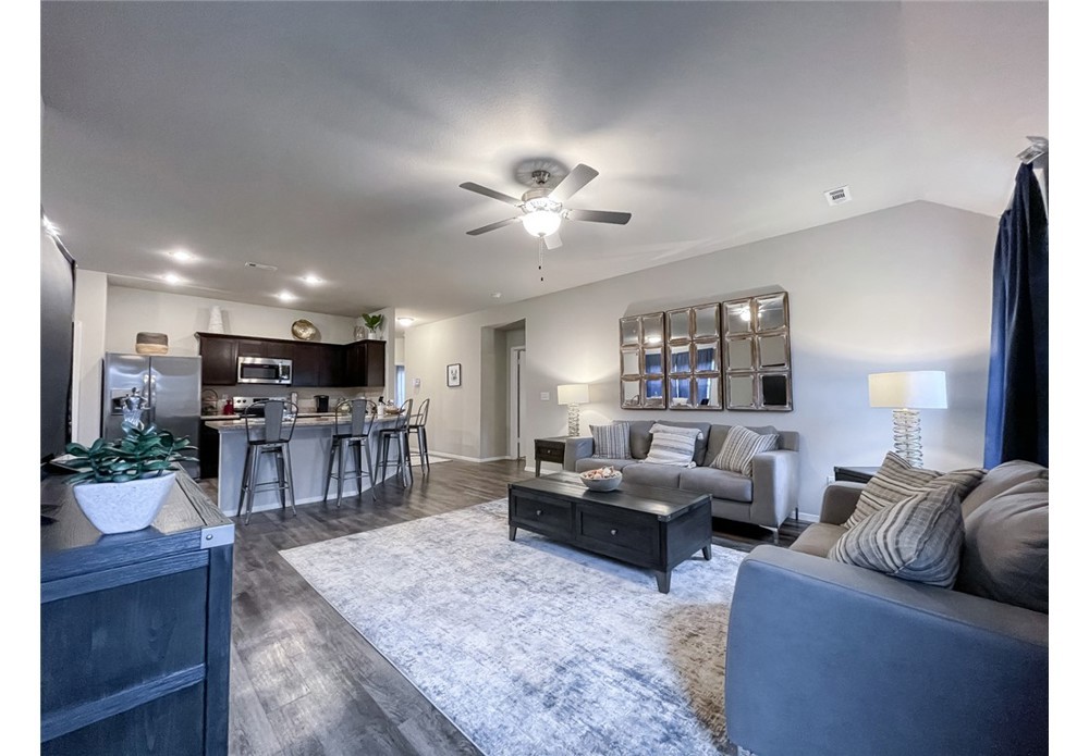 Introducing the lovely Ross plan, a home that exudes curb appeal with its welcoming covered front porch and beautifully landscaped front yard. This thoughtfully designed residence features an open floor plan, offering three spacious bedrooms and two modern bathrooms. The expansive family room provides an ideal space for relaxation and gatherings, while the eat-in kitchen is fully equipped with energy-efficient appliances, ample counter space, and a roomy pantry for all your culinary needs. Plus, the charming covered entryway adds an extra touch of elegance. Discover the appealing features of the Ross plan today! *Photos are of a similar model.