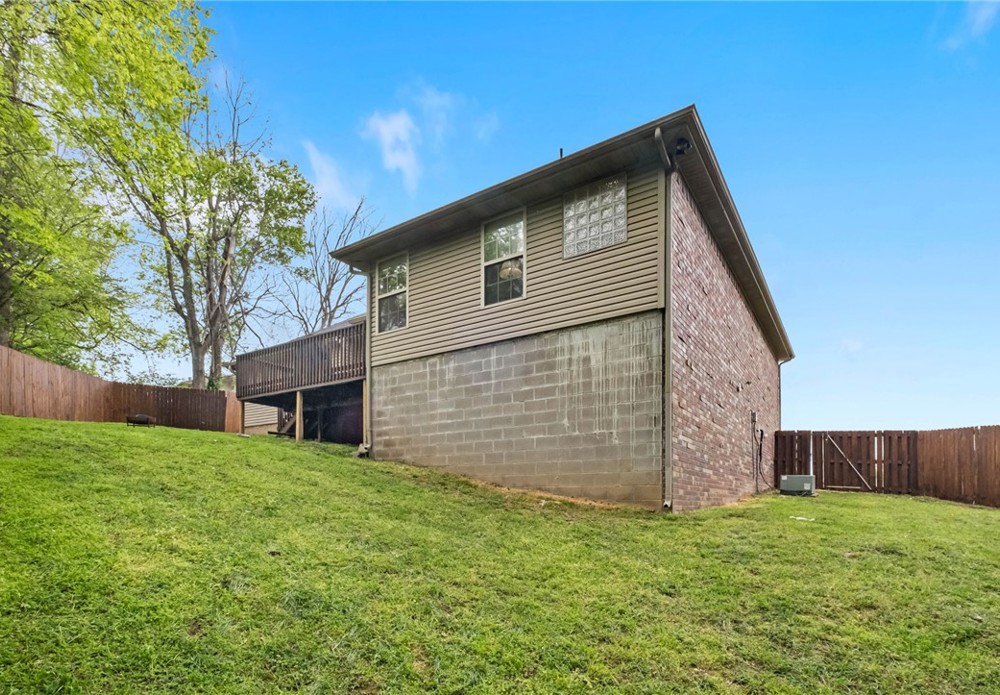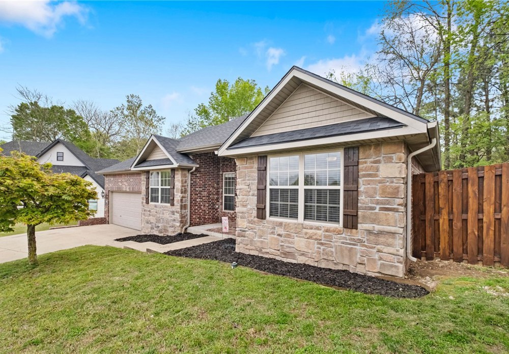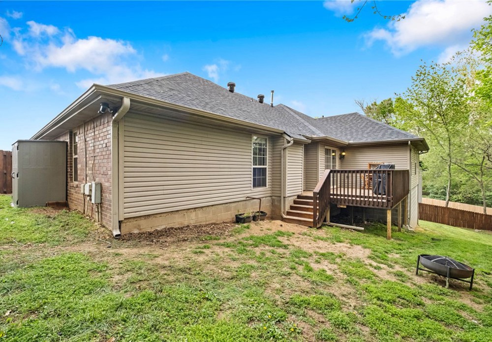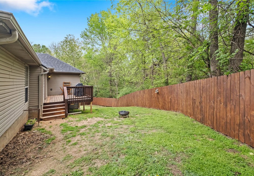 Brand new roof, water heater, electrical panel, fresh paint, and newly stained fence on this Fayetteville charmer. The entry opens into a beautiful living area with fireplace and symmetrical windows. The kitchen opens into the dining area and also has a window that connects to the living area. There's a second formal dining area that could be an office, too. This is a truly split floor plan with a private primary suite and a true 5-piece ensuite, which is unusual for the price range. On the other side of the house, there are 2 bedrooms with a hall bath between. Outside there's a newly stained deck, and a recently rebuilt and stained privacy fence. The neighborhood is not part of the neighboring HOA, and close to everything Fayetteville has to offer. It's a 12-minute drive to the University of Arkansas and easy access to head north on I-49!